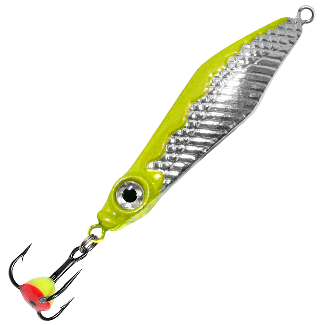Тройник, оснащенный светящейся, разноцветной каплей привлекает хищника в тот момент, когда блесна неподвижна, поэтому паузы при ловле на МАЛЬКА нужно делать максимально продолжительные