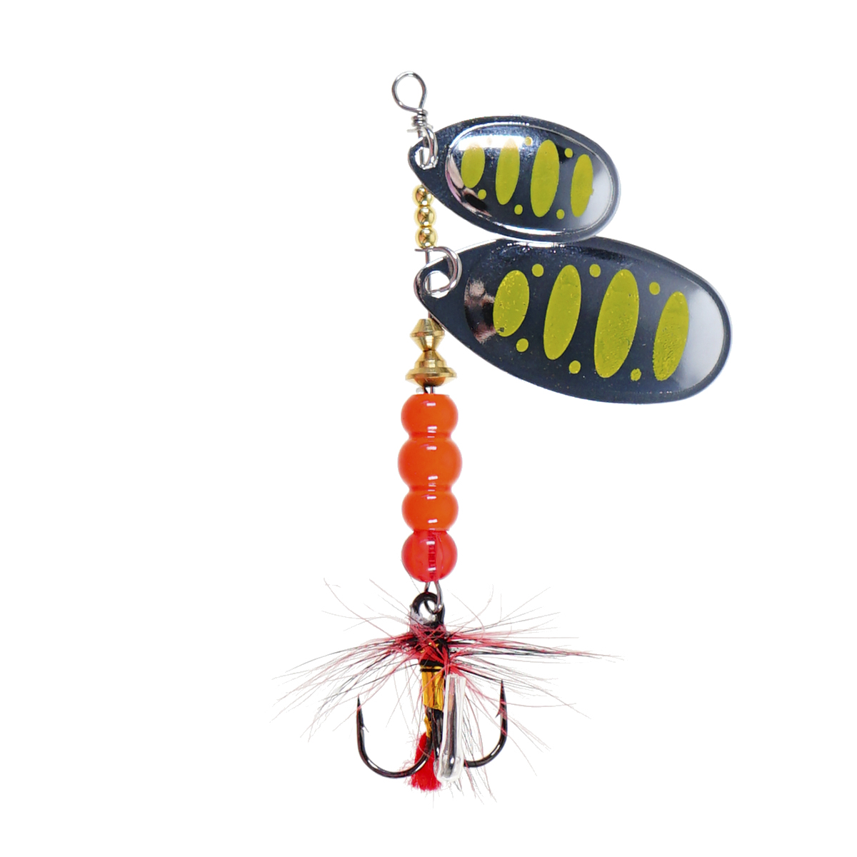 Сердечник-гусеница добавляет приманке дополнительную привлекательность для добычи. Контроль над игрой блесны легко осуществляется изменением скорости проводки: увеличение скорости повышает частоту вращения лепестков, уменьшение — снижает интенсивность игры.