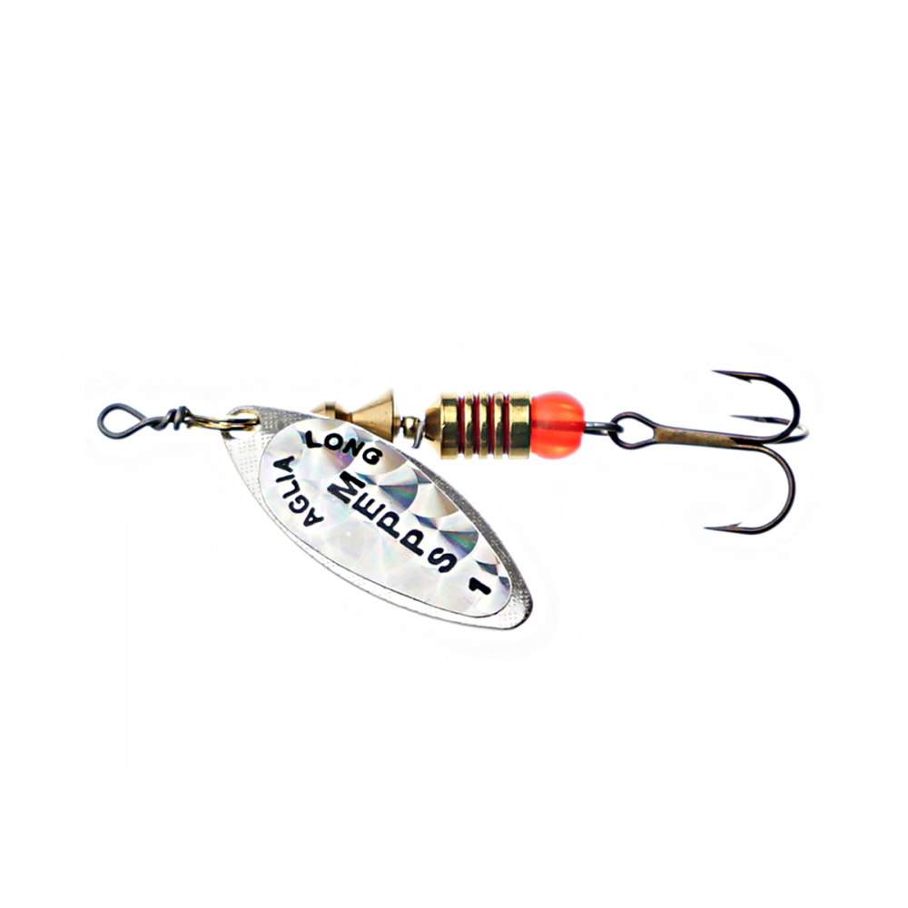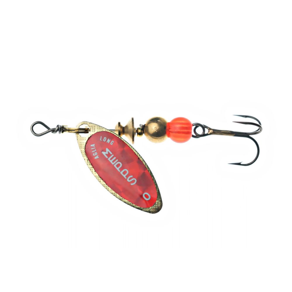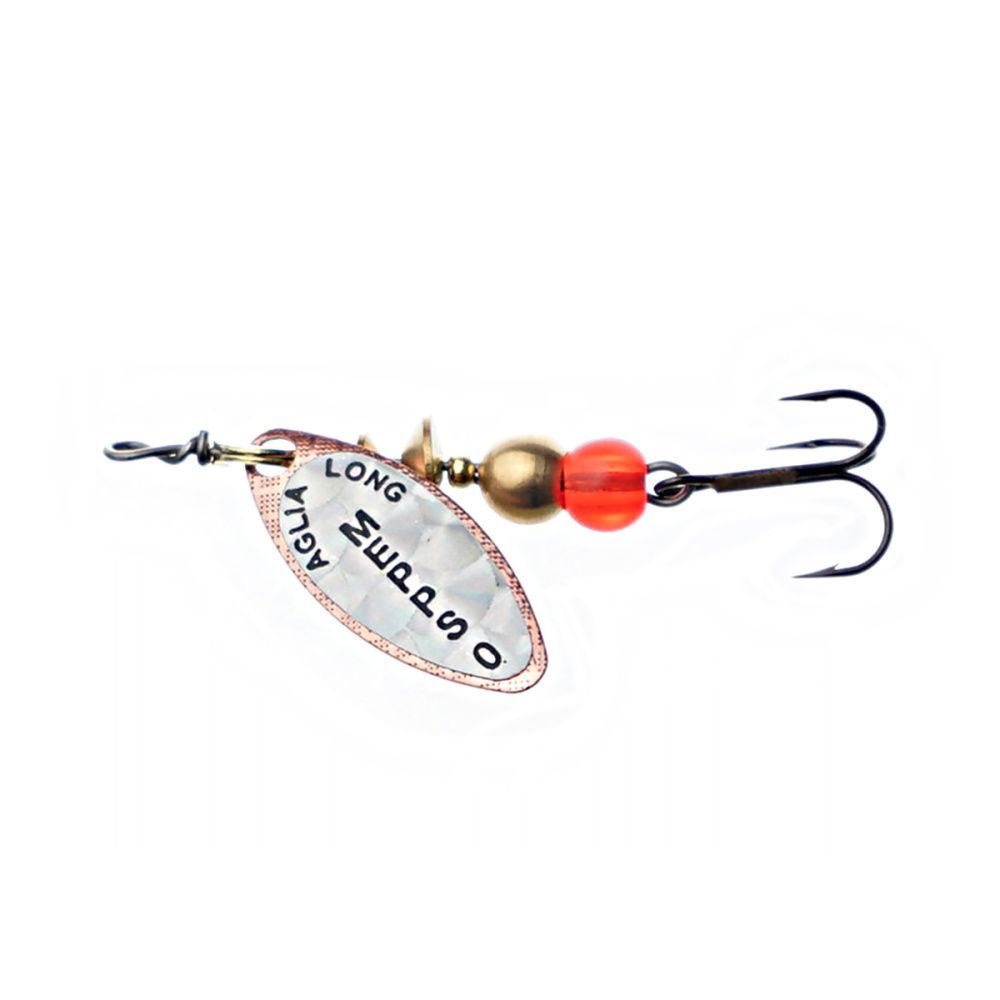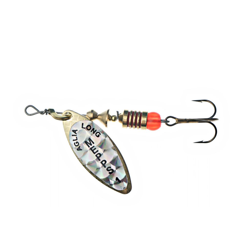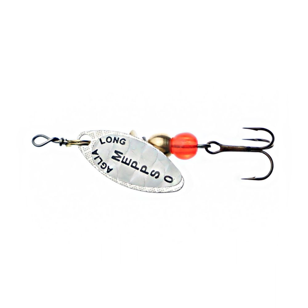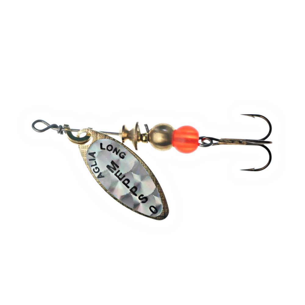 Тем не менее, далеко не все размеры этих блёсен хорошо освоены российскими рыболовами. Основная причина - недостаток практики и точной информации. Название приманки обусловлено продолговатой формой лепестка, имеющего отклонение от оси вращения 30 градусов и небольшое лобовое сопротивление. Справедливости ради, следует отметить, что оно несколько изменяется, в зависимости от скорости проводки. Именно эта особенность, то есть очень широкий диапазон допустимой скорости движения, при которой сохраняется безукоризненная работа блесны, и есть главный секрет рекордной уловистости Aglia Long.