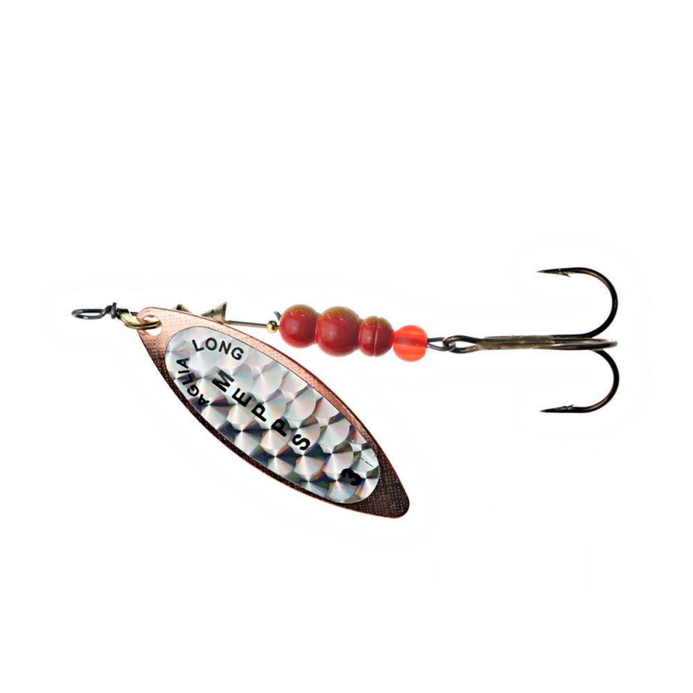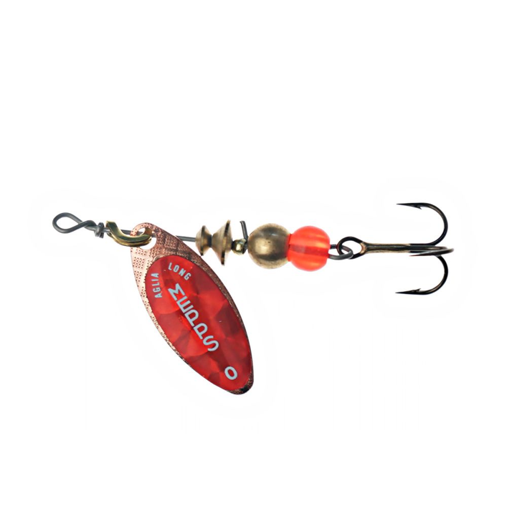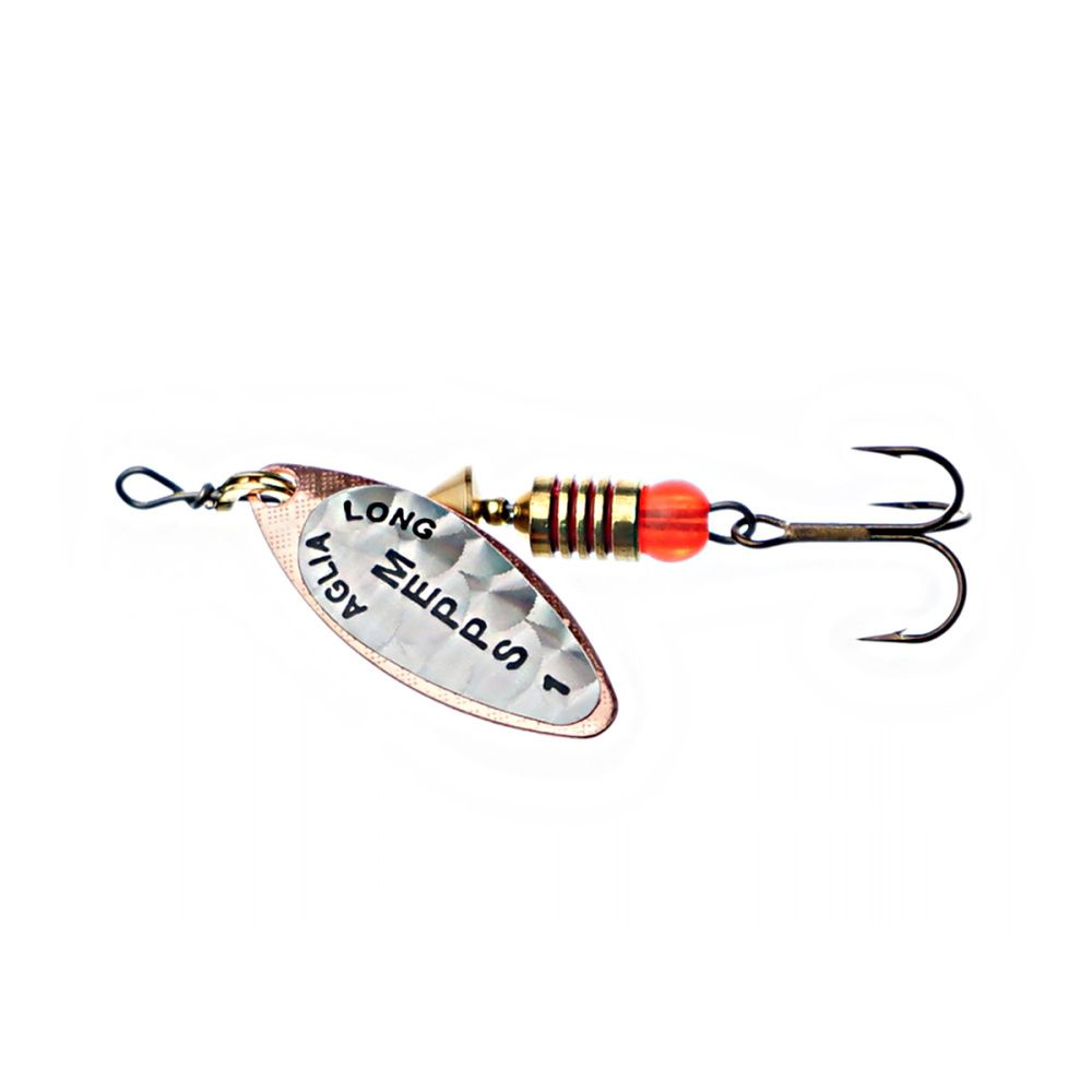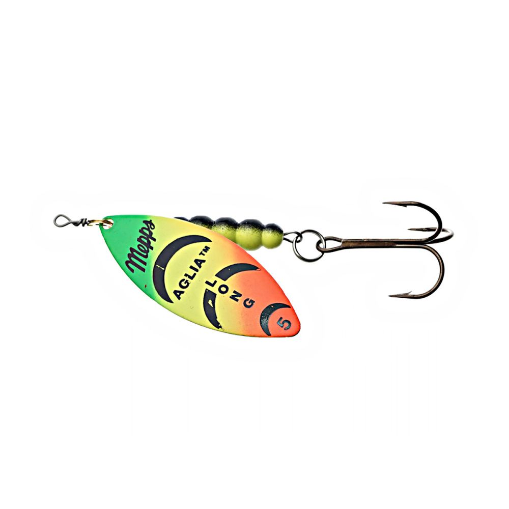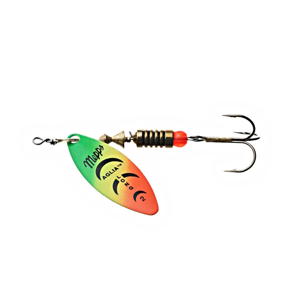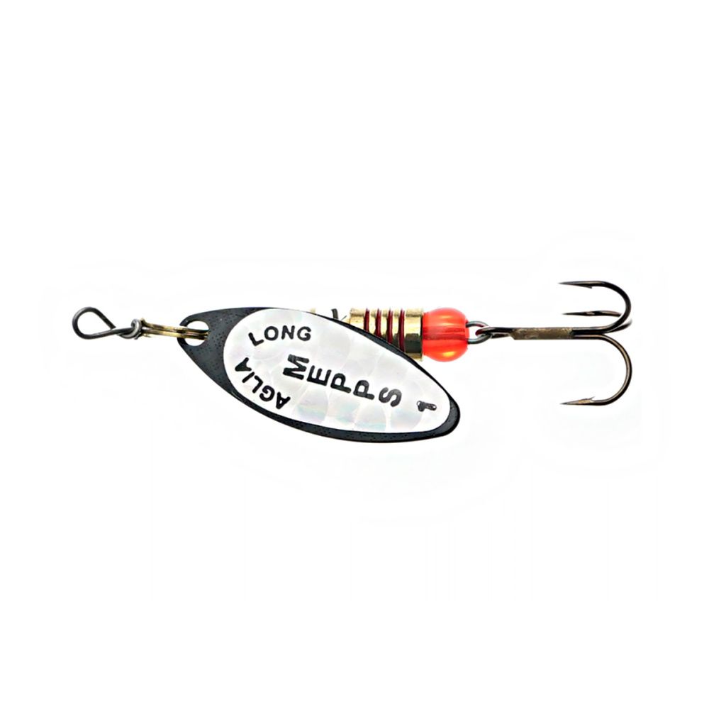 Тем не менее, далеко не все размеры этих блёсен хорошо освоены российскими рыболовами. Основная причина - недостаток практики и точной информации. Название приманки обусловлено продолговатой формой лепестка, имеющего отклонение от оси вращения 30 градусов и небольшое лобовое сопротивление. Справедливости ради, следует отметить, что оно несколько изменяется, в зависимости от скорости проводки. Именно эта особенность, то есть очень широкий диапазон допустимой скорости движения, при которой сохраняется безукоризненная работа блесны, и есть главный секрет рекордной уловистости Aglia Long.