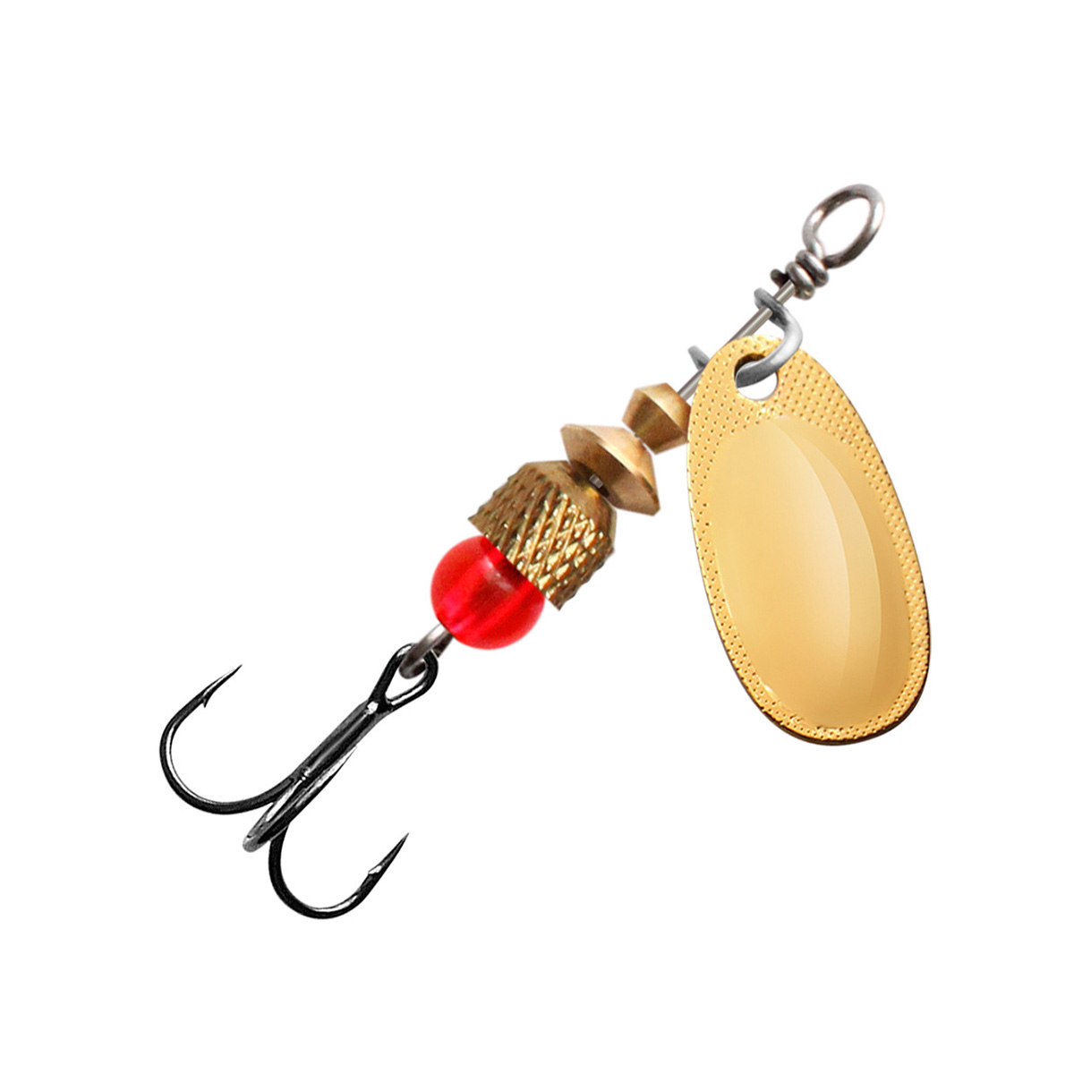 - полированного лепестка из цветного металла классической формы с боковой чеканкой, который делает игру приманки максимально стабильной – без «залипаний» в момент проводки. Выпуклая форма лепестка работает как сферическое зеркало, позволяя отражать любой лучик света, с какой бы стороны он не упал на блесну, что особенно полезно при ловле на глубине или в мутной, плохо освещенной воде.
