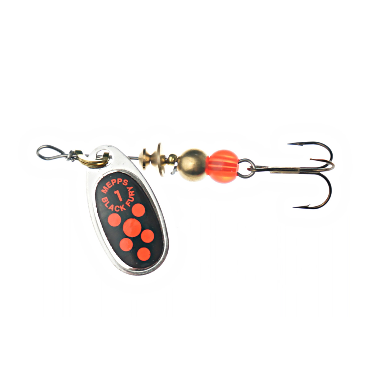 Блесна вращающаяся Mepps Black Fury Orange/Silver №1 3,5гр серебристая, черный фон, оранжевые точки