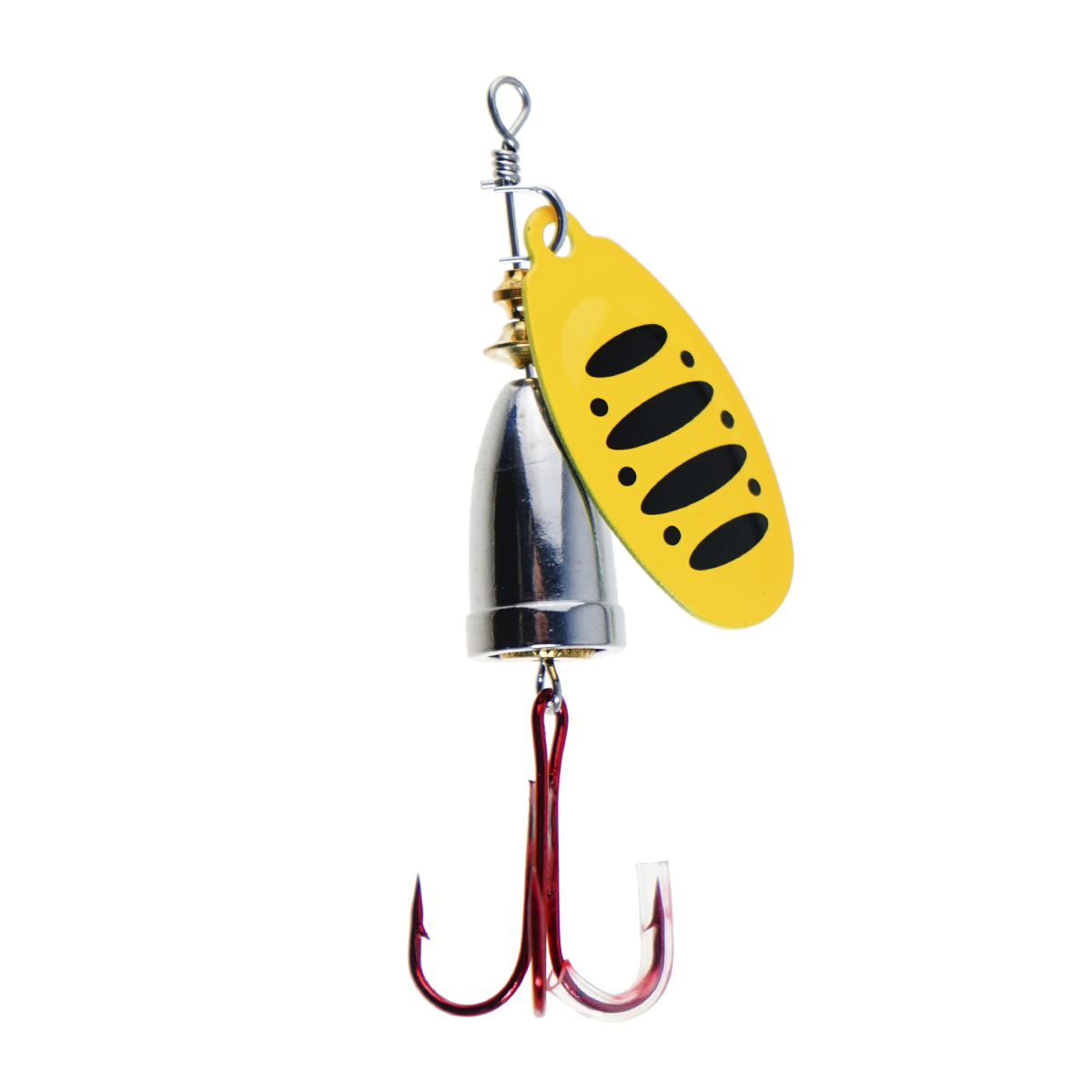 Особенность конструкции "колокольчика" заключается в том, что во время движения он ударяется о сердечник блесны, издавая характерные щелчки, которые дополнительно привлекают рыбу.