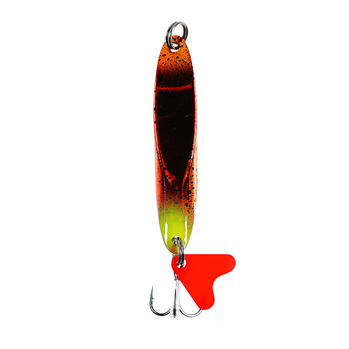 тройник снабжен красным пластиковым плавничком—яркой точкой атаки для прицельного хватка