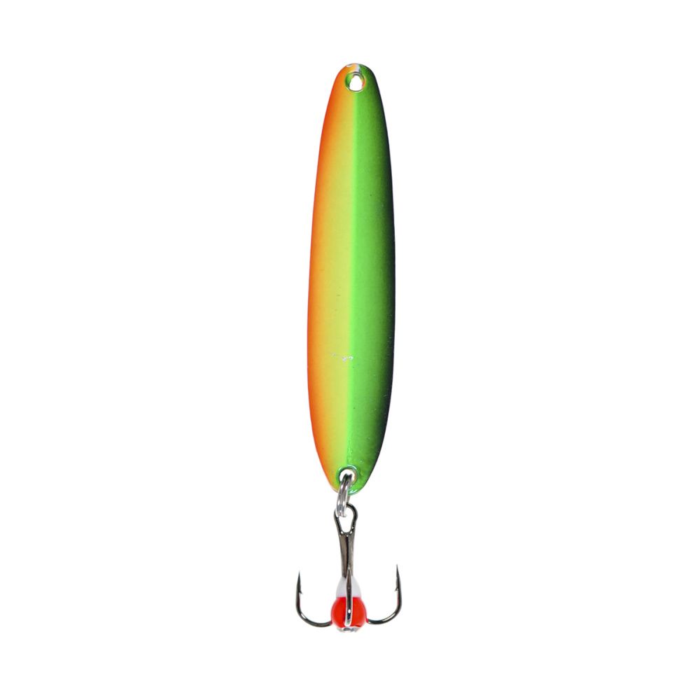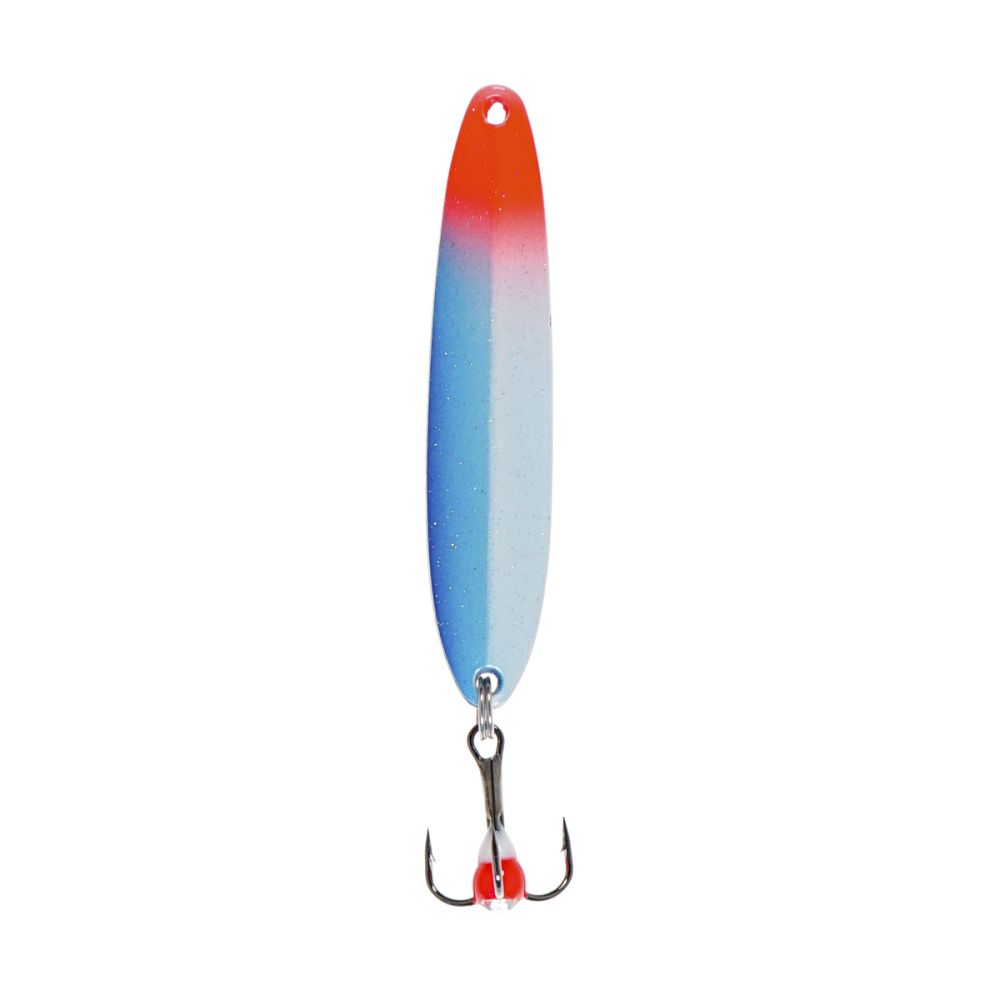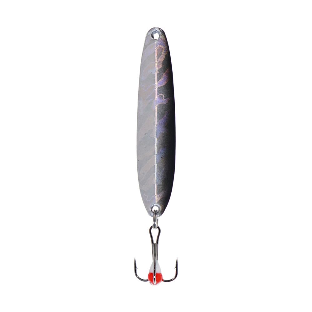 В отличие от более лёгких зимних блёсен того же размера, масса 15 г лучше пробивает толщу воды и меньше сносится течением, а вертикальный тип игры остаётся стабильным при разных темпах анимации. Надёжный тройник и заводное кольцо выдерживают резкие рывки судака; угловатый профиль с плоской лицевой стороной дополнительно усиливает колебания и заметность приманки.