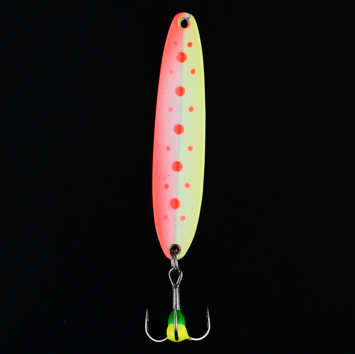 Корпус выполнен из латуни с ручной полировкой и стойким гальваническим покрытием — блесна долго сохраняет привлекательный блеск и устойчивость к коррозии. Оснащение — облитый тройник Saikyo с отличной засекаемостью, готовый к работе «из коробки». Сделано в России.