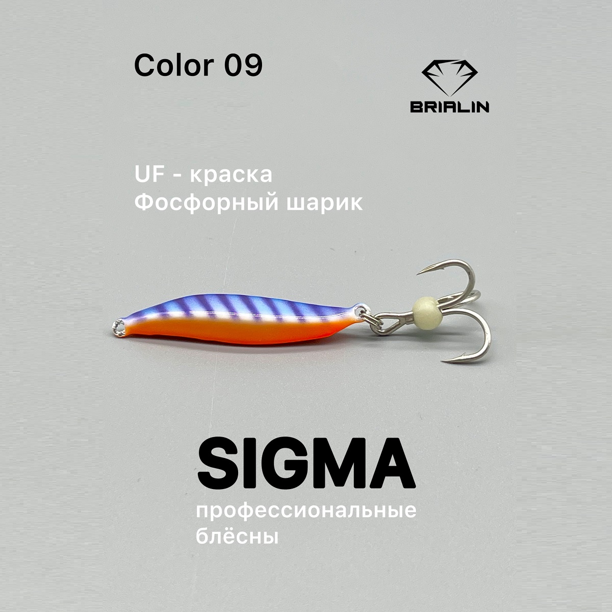 Блёсны бриалин сигма изготовлены из свинца, что позволяет за счёт своей небольшой формы иметь хороший вес для ловли на больших глубинах с течением и использованием эхолота.