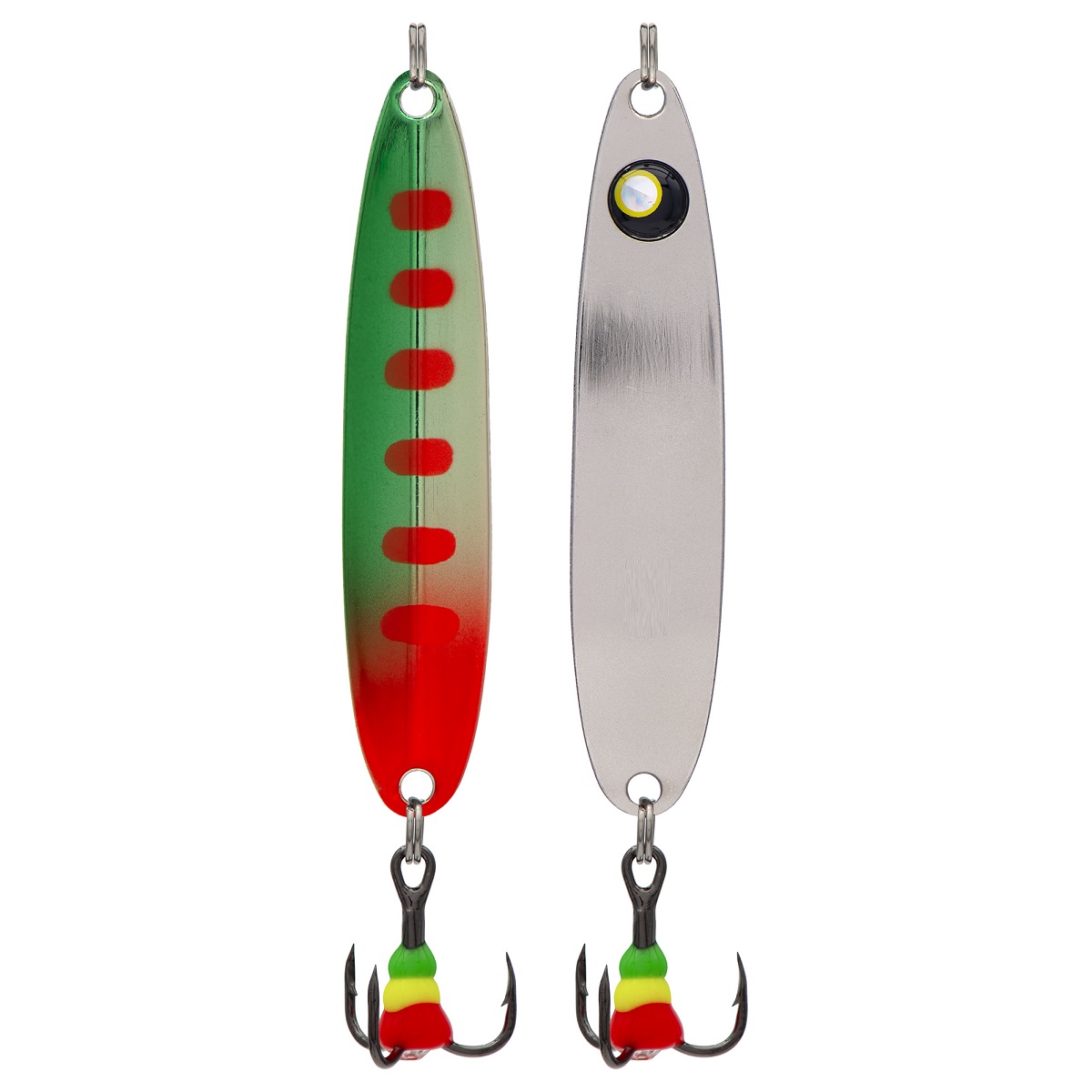 Блесна зимняя судаковая Бадис 5813 70мм 15гр серебристая, с глазом, зеленая, с красными точками 166#
