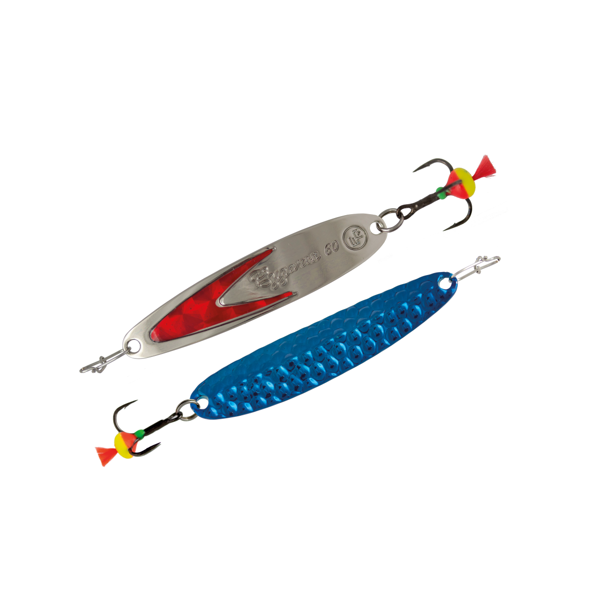 Блесна зимняя EcoPro Судачья 50мм 6гр цвет Bb/SRF (серебристая, рифленая синяя, флектолайт красный)