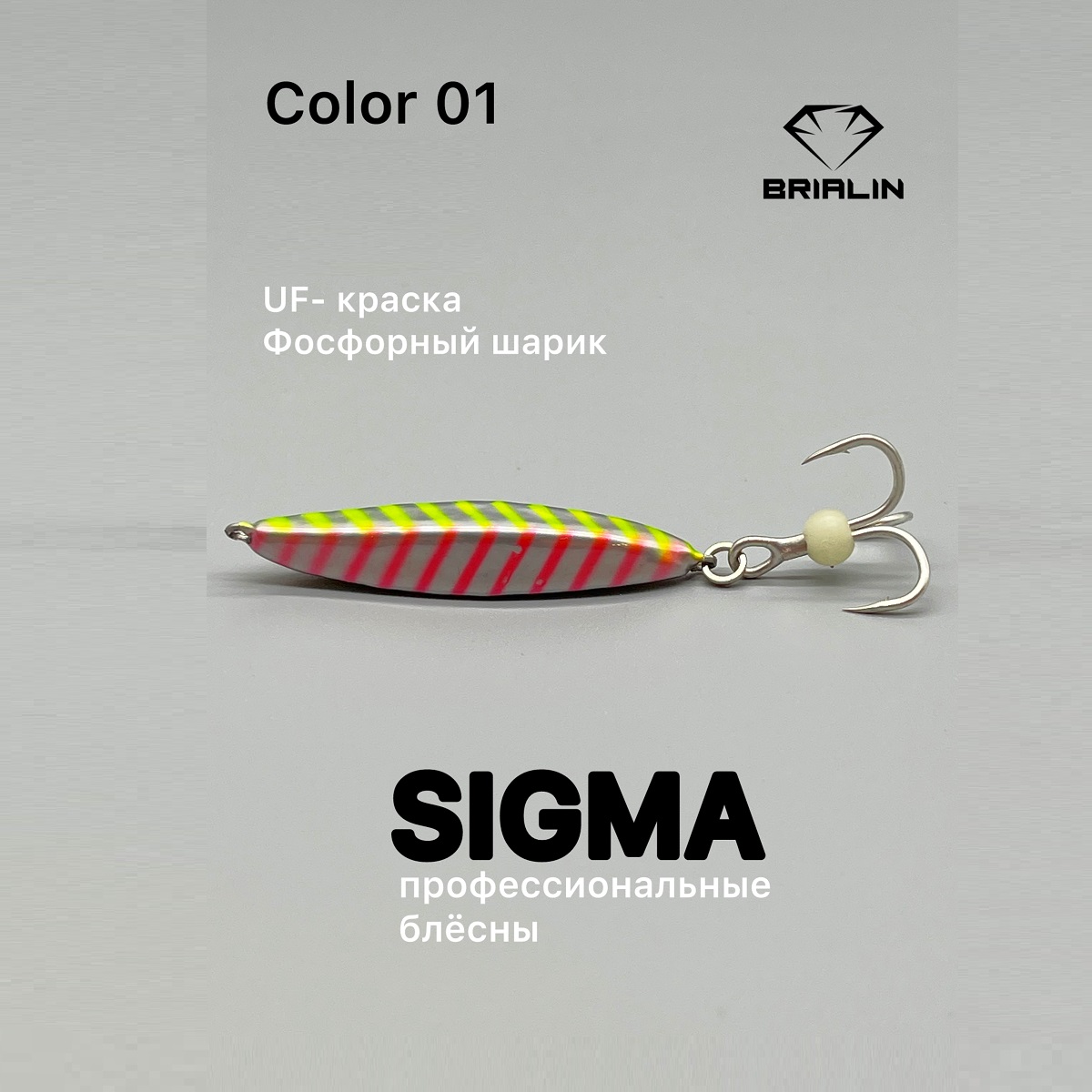 Блёсны бриалин сигма изготовлены из свинца, что позволяет за счёт своей небольшой формы иметь хороший вес для ловли на больших глубинах с течением и использованием эхолота.