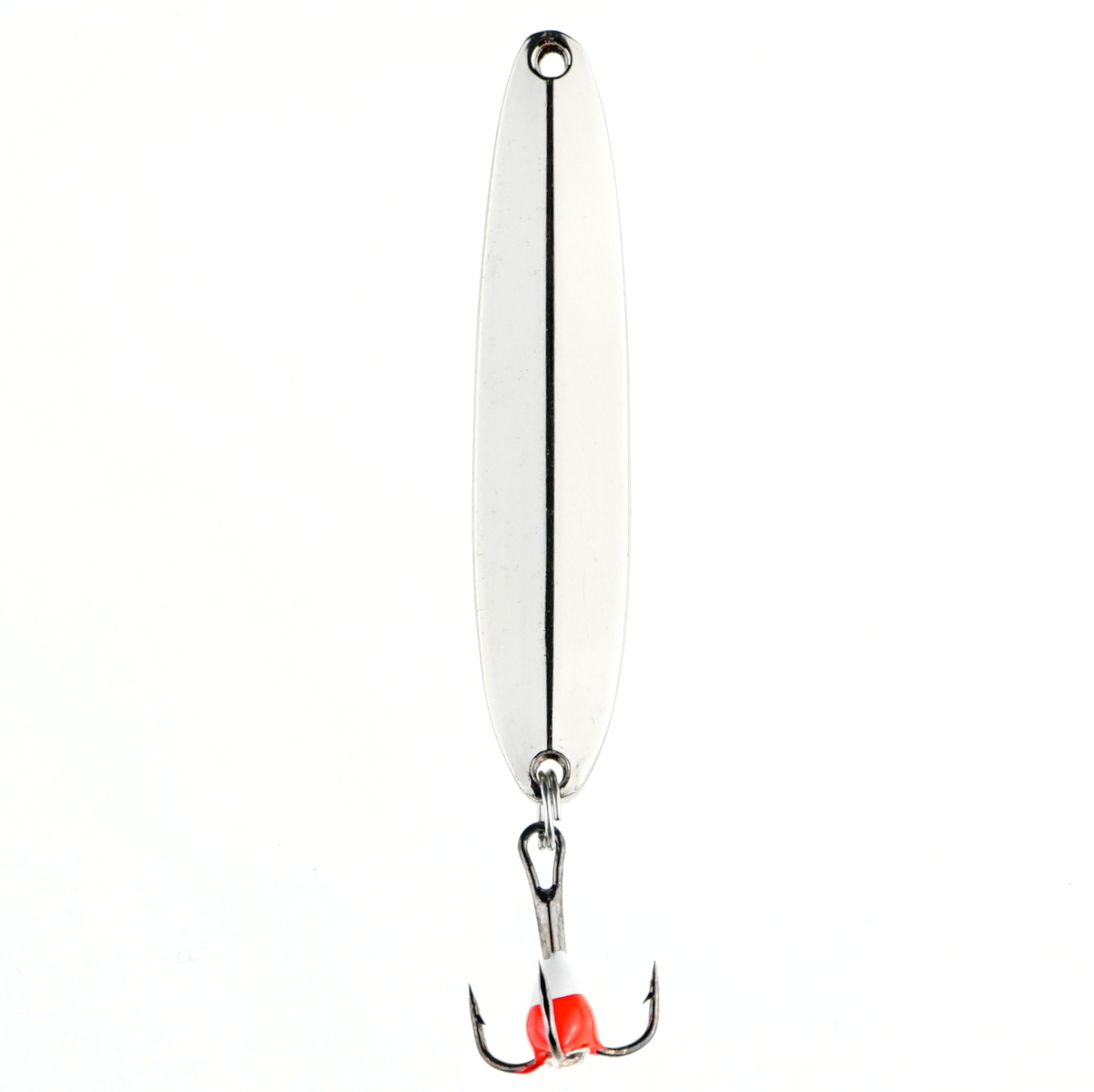 Тройник заводской заточки надёжно фиксирует трофей, снижая вероятность сходов при вываживании через лунку. Серебристый цвет хорошо работает в прозрачной зимней воде, создавая выраженные блики и провоцируя хищника на атаку.