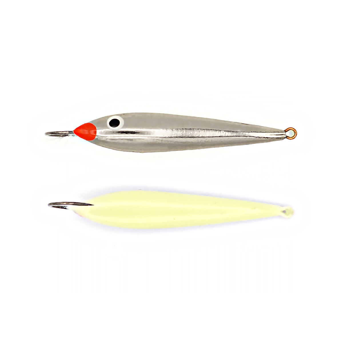 Блесна зимняя На рыбалку и точка Окуневая большая, с 2-мя крючками 3,5гр серебристая, светонакопитель