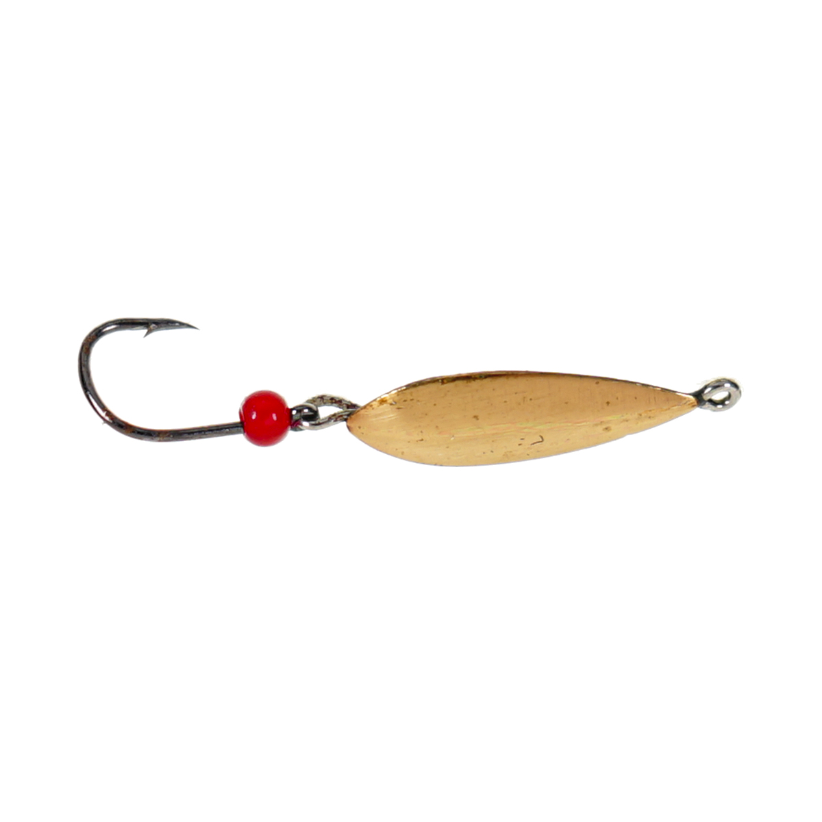 Латунное тело обеспечивает естественный «тёплый» отблеск, заметный рыбе даже при слабом освещении подо льдом. Подвесной крючок свободно работает в такт колебаниям, повышая реализацию осторожных поклёвок и облегчая подсечку. Модель весом 2 г быстро выходит на рабочий горизонт и остаётся чувствительной на тонких лесках — отличный выбор для прицельной ловли на малых и средних глубинах.