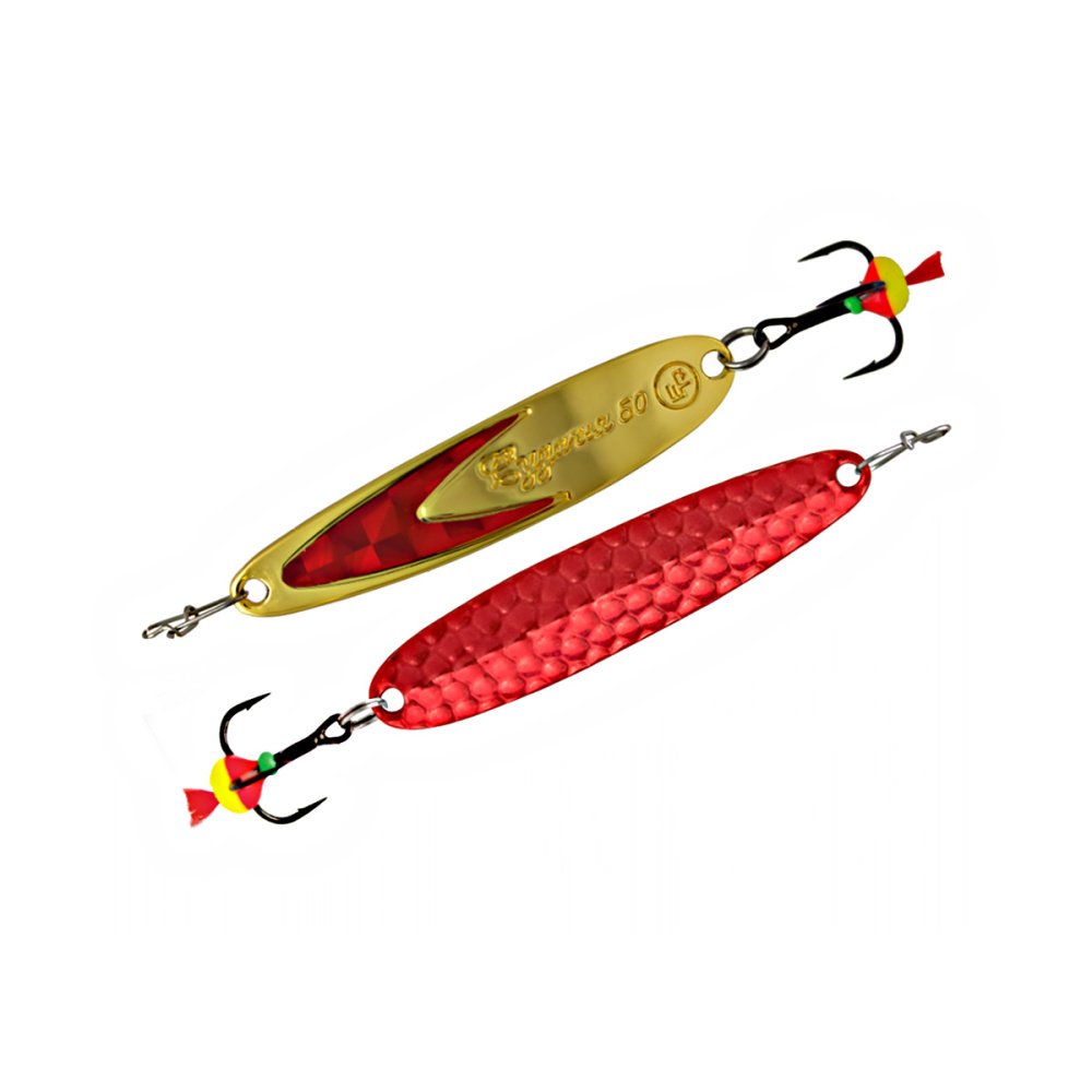 Блесна зимняя EcoPro Судачья 60мм 10гр цвет Gb/GRF (золотистая рифленая, флектолайт красный)