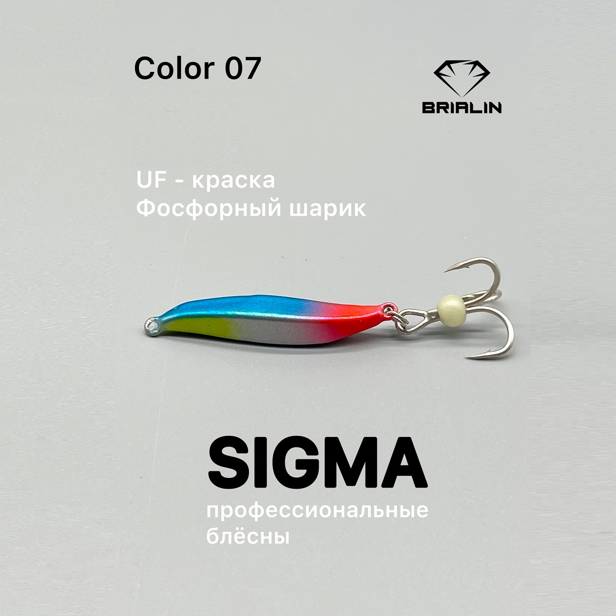 Блёсны бриалин сигма изготовлены из свинца, что позволяет за счёт своей небольшой формы иметь хороший вес для ловли на больших глубинах с течением и использованием эхолота.