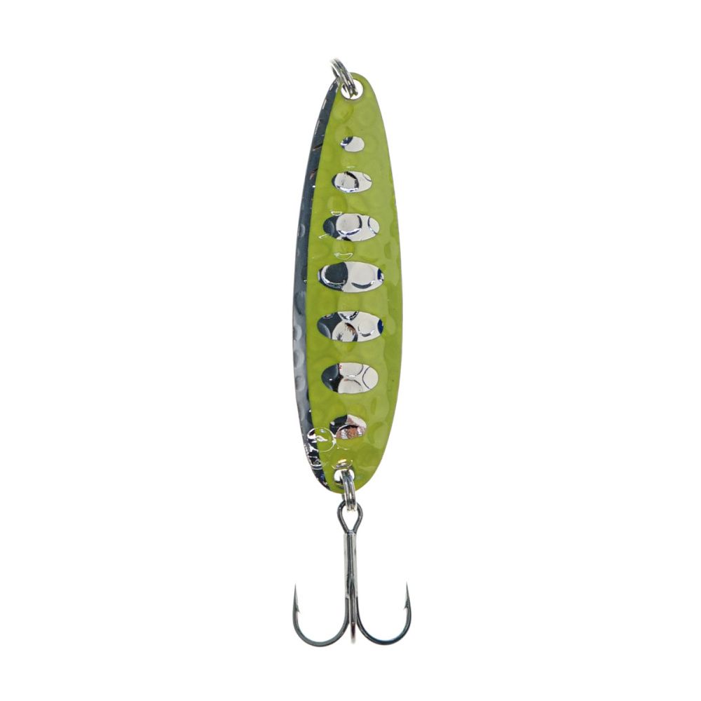 Узкотелая, с изогнутым профилем в хвостовой части, эта блесна прекрасно летит при забросе и размашисто виляет при проводке. Внешняя сторона приманки, выполненная в виде рельефной поверхности вкупе с нанесенным на нее рисунком, способствует дополнительному привлечению хищника. Представлено две модификации Sinuoso Spoon, имеющие при абсолютно одинаковой длине, но различной толщине профиля, разный вес.