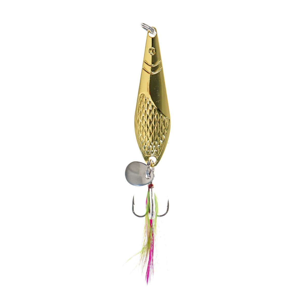 Колеблющаяся приманка с комбинированной оснасткой: мушка на крючке создает объемный силуэт и дополнительную вибрацию, а лепесток добавляет яркие вспышки и шумовой фон. Такое сочетание стабильно провоцирует хищника на атаке как на равномерной, так и на ускоренной проводке.