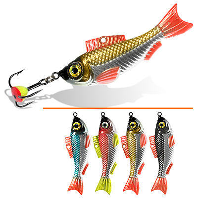 Блесна Натурал оснащена тройным крючком с фосфорной светящейся каплей, расположенной в головной части приманки.
