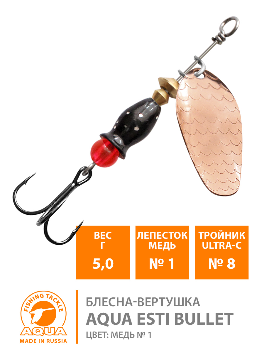Блесна вращающаяся Aqua Esti Bullet №1 5гр медная