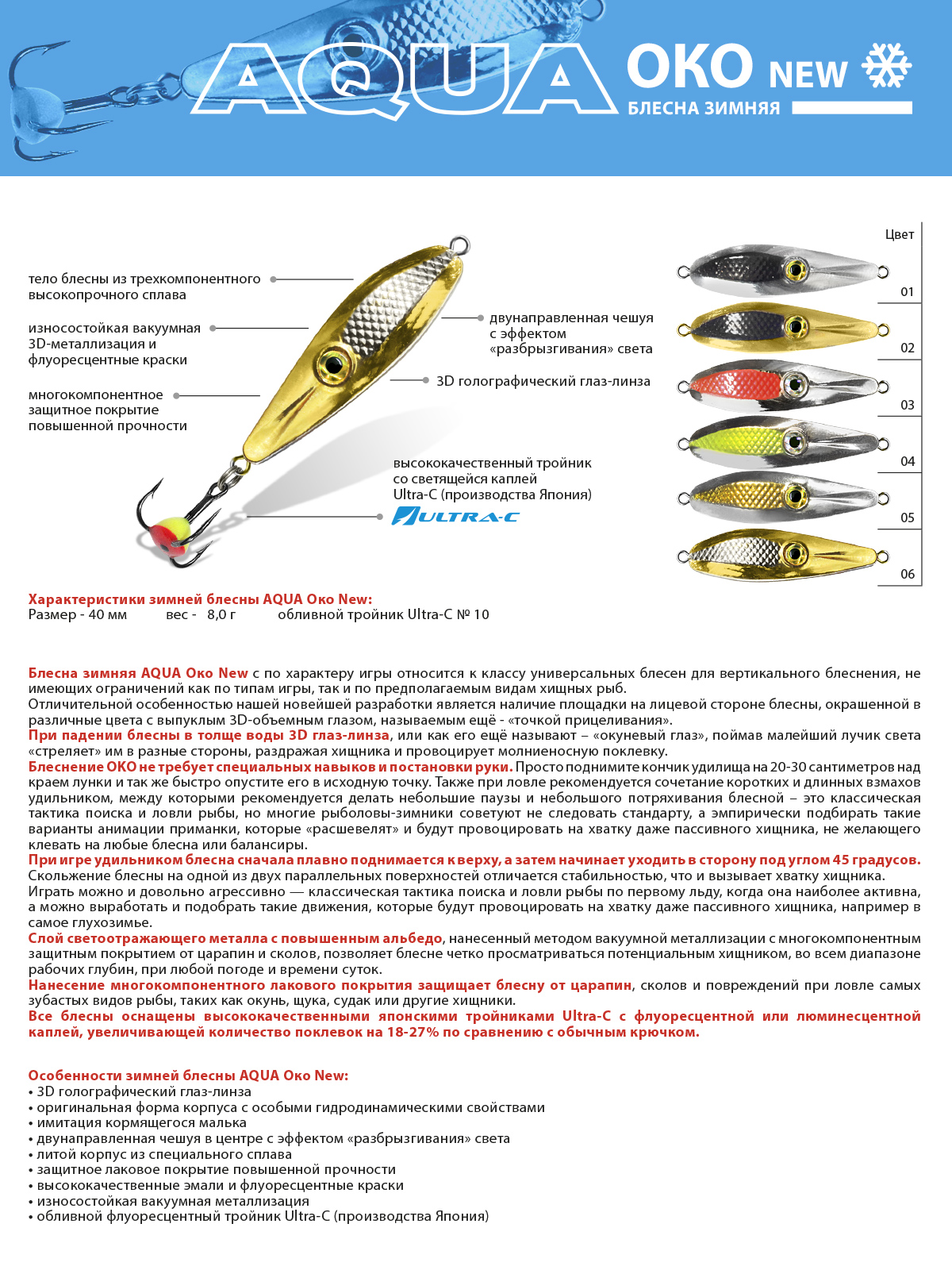 Блесна зимняя Aqua Око New 8гр цвет 06