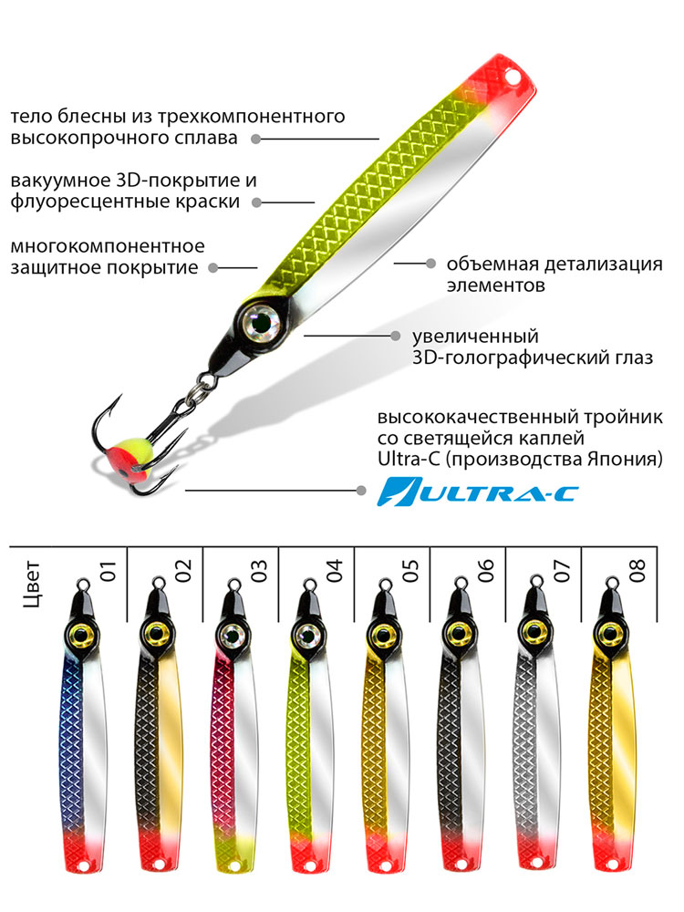Секрет её эффективности - наличие четырёх отражающих поверхностей, преломляющих свет во всех направлениях, благодаря чему окунь её непременно заметит.
