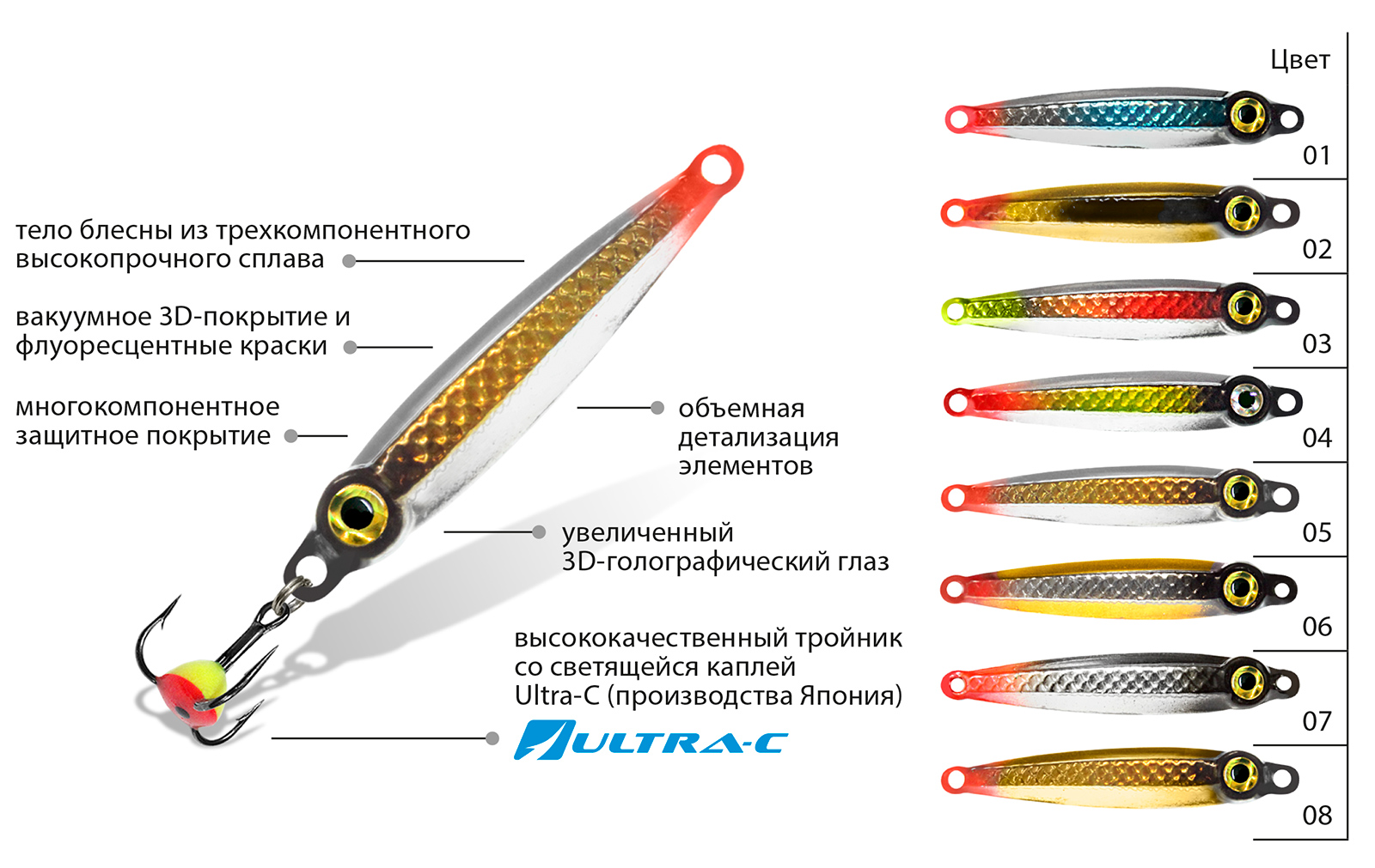 По форме ОНЕГА напоминает маленькую лодку-плоскодонку. Благодаря этому она далеко "уходит" от лунки, превосходя в дальноходности другие модели блесен.
