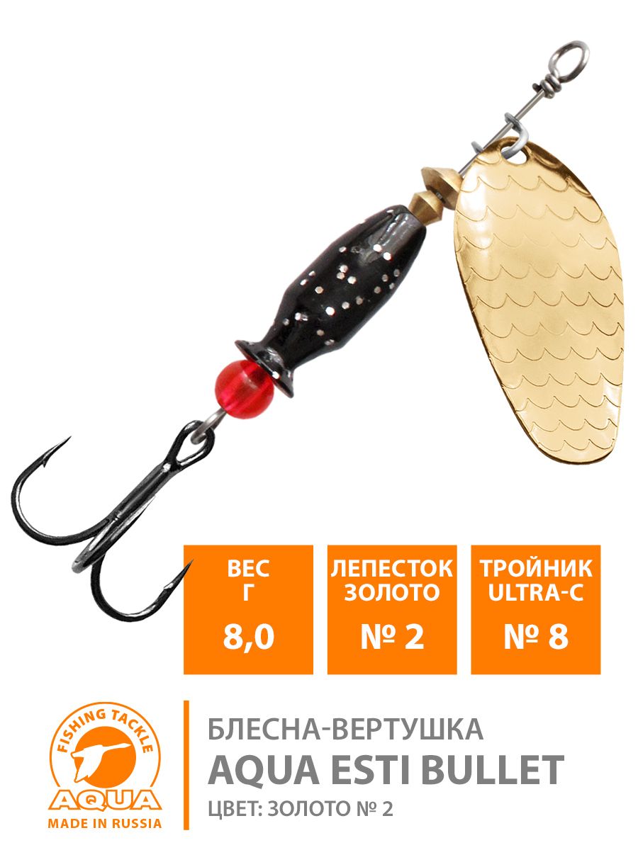 Блесна вращающаяся Aqua Esti Bullet №2 8гр золотистая