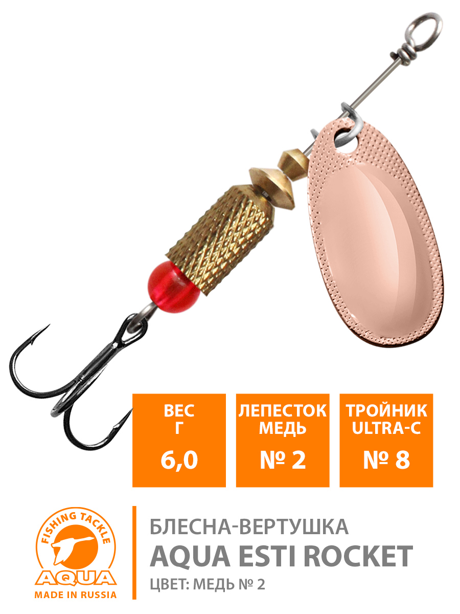 Блесна вращающаяся Aqua Esti Rocket №2 6гр медная