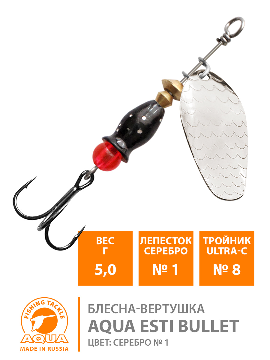Блесна вращающаяся Aqua Esti Bullet №1 5гр серебристая