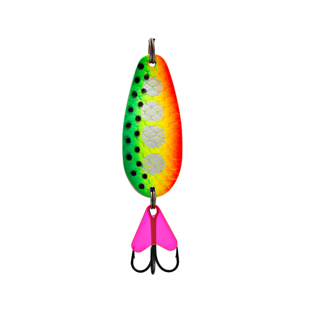 Так блесна совершает постоянные сильные колебания, напоминая хищнику своей игрой плывущую рыбку, которую он не оставит без внимания.