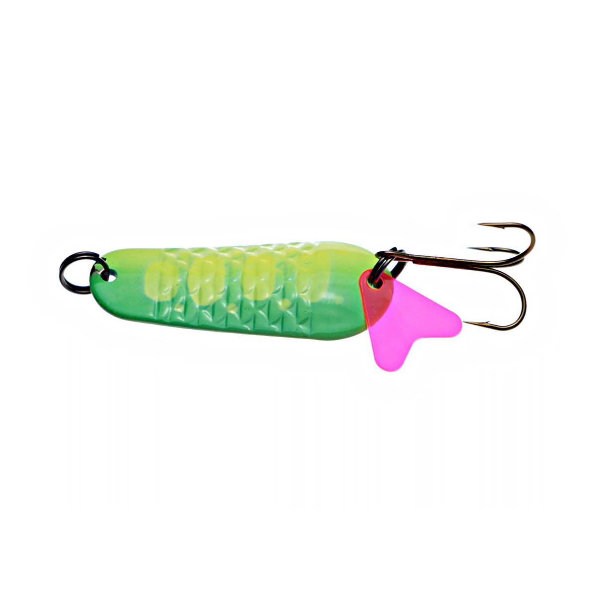 Игра блесны показывает частые плавные колебания, полностью имитируя плывущую рыбку, которую хищник не оставит без внимания.
