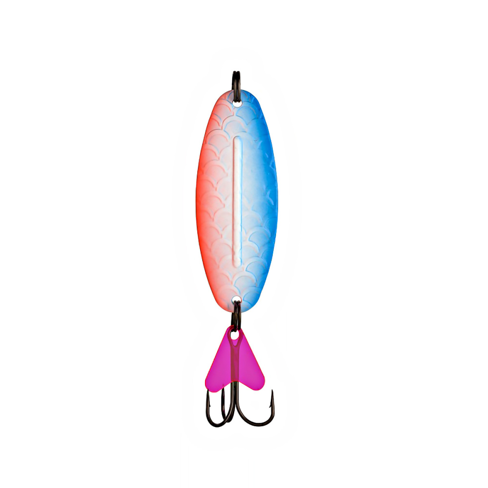 Игра блесны скоростная, колебания длинные, не частые. Всё это полностью имитирует плывущую рыбку, которую хищник не оставит без внимания.