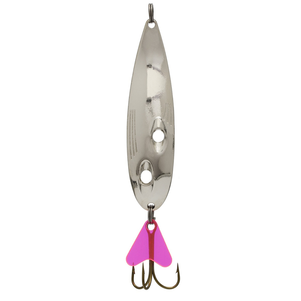 Так блесна совершает постоянные сильные колебания, напоминая хищнику своей игрой плывущую рыбку, которую он не оставит без внимания.