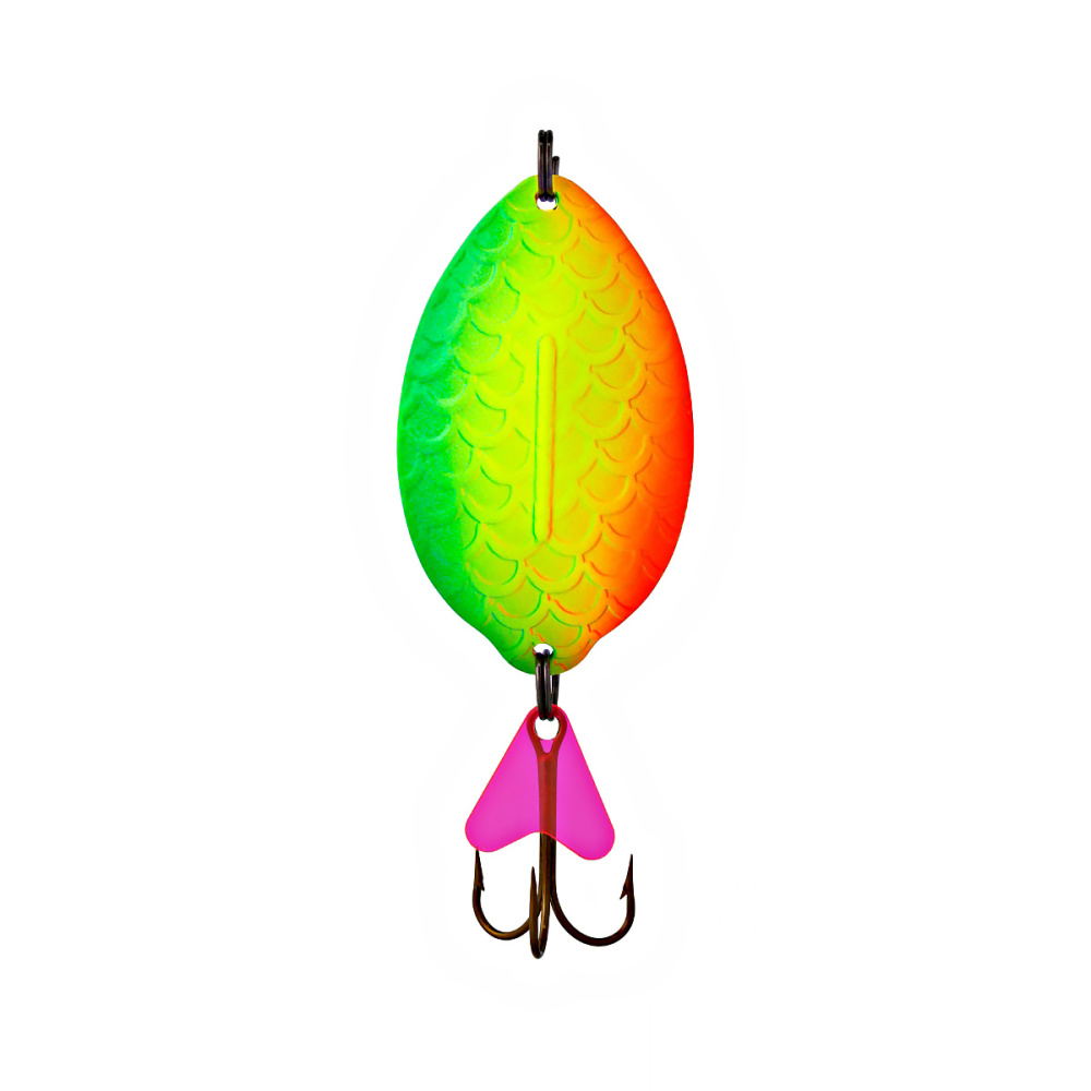 Так блесна совершает постоянные сильные колебания, напоминая хищнику своей игрой плывущую рыбку, которую он не оставит без внимания.