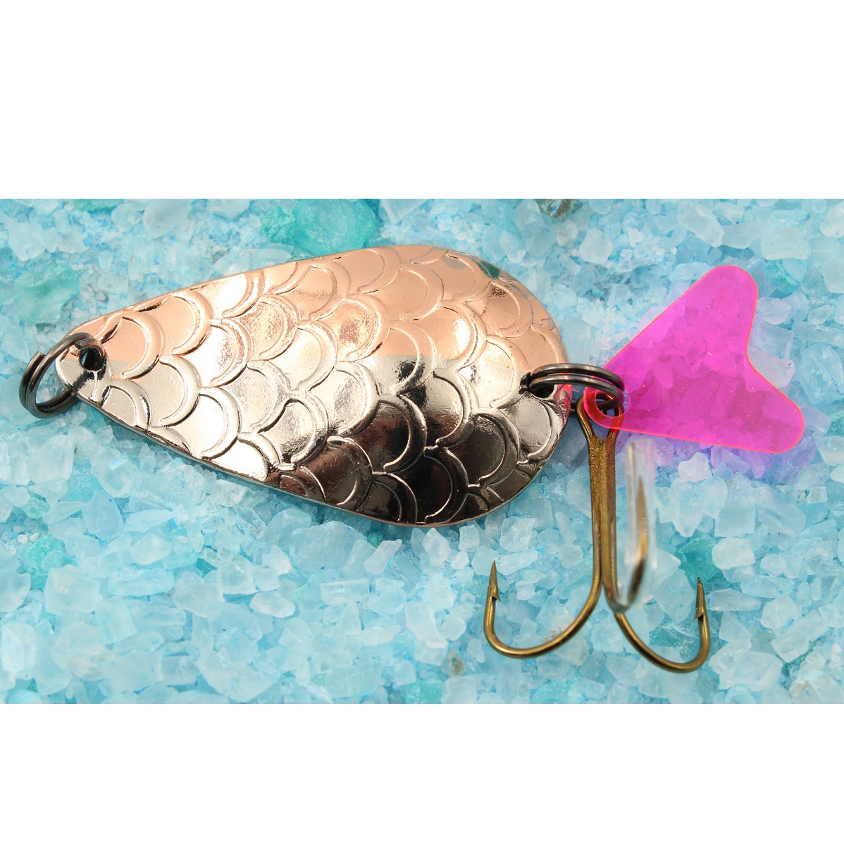 Так блесна совершает постоянные сильные колебания, напоминая хищнику своей игрой плывущую рыбку, которую он не оставит без внимания.