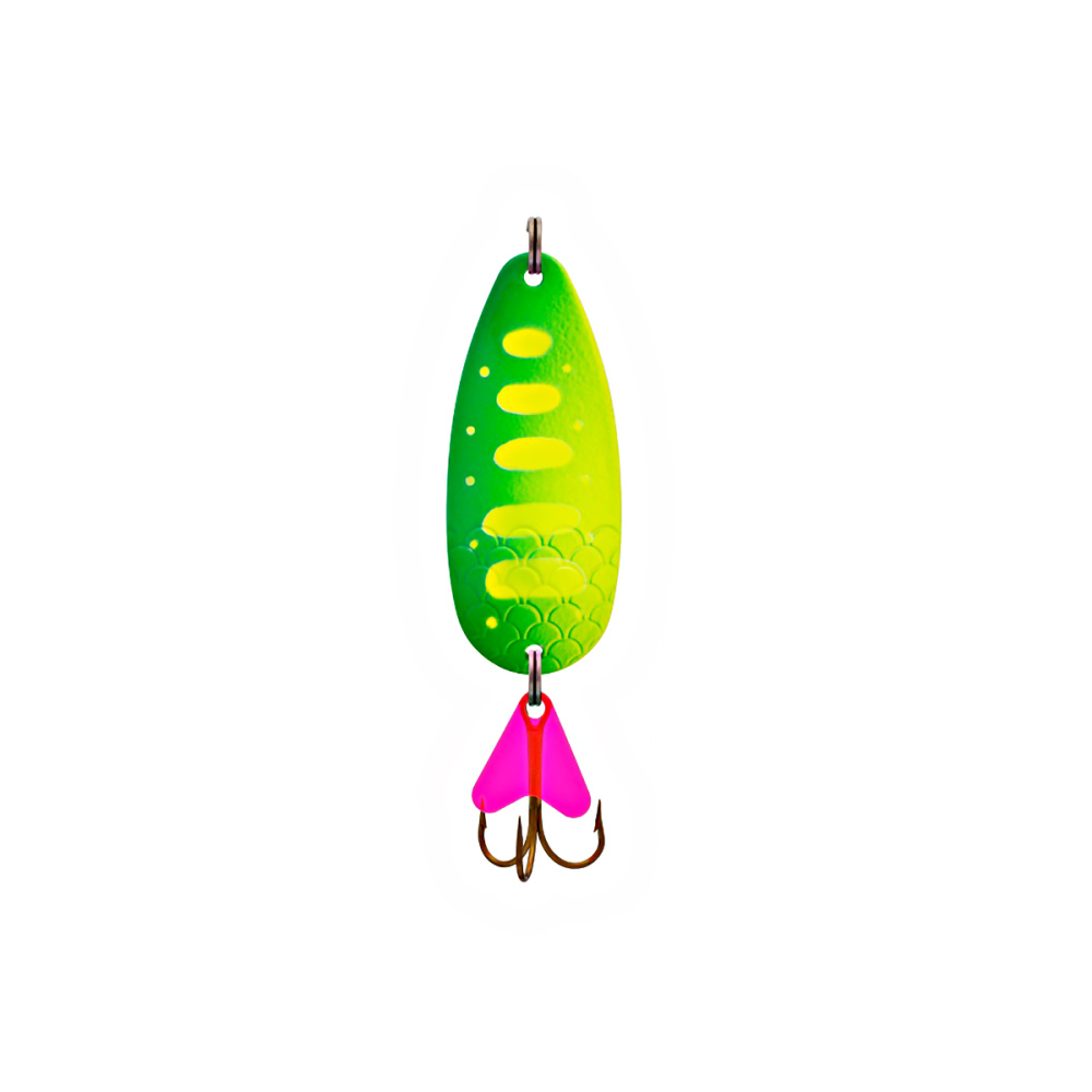 Так блесна совершает постоянные сильные колебания, напоминая хищнику своей игрой плывущую рыбку, которую он не оставит без внимания.