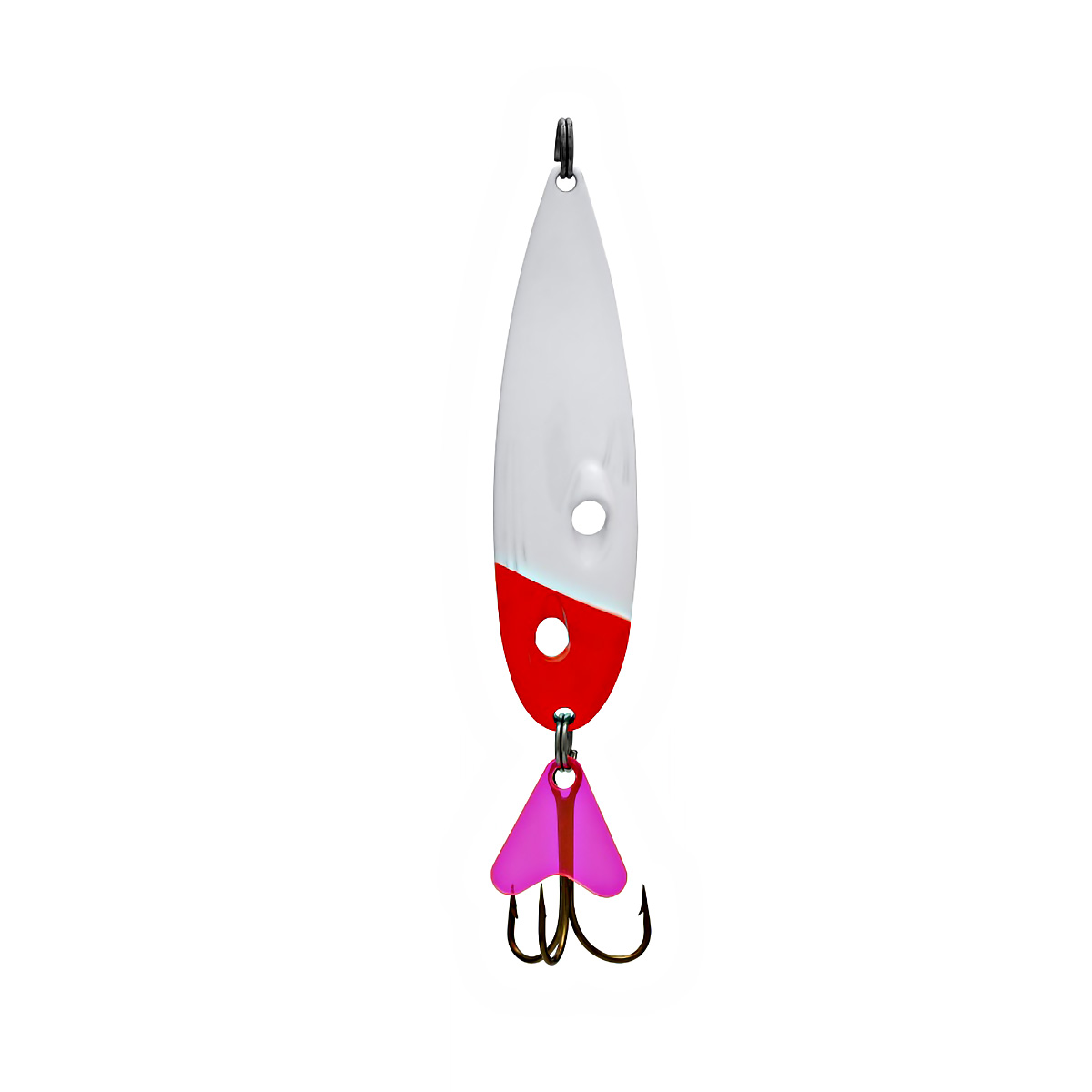 Уникальность игры блесны в двух сквозных отверстиях, расположенных под углом вдоль выпулкости. За счёт этих отверстий создаются кавитационные шумы, которые также раздражают хищника на атаку блесны.