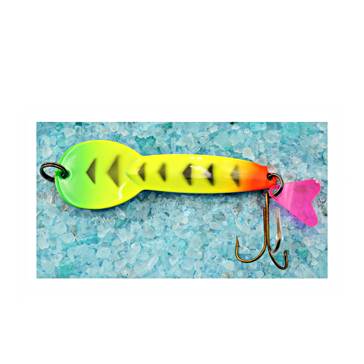 Игра блесны высокоамплитудная, что позволяет ей пересекать не один слой воды. Колебания частые, скоростные. Всё это полностью имитирует плывущую рыбку, которую хищник не оставит без внимания.