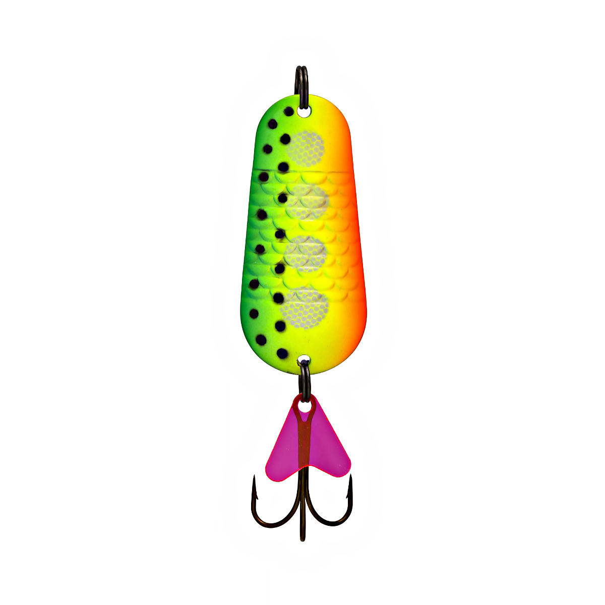 Игра блесны показывает частые плавные колебания, полностью имитируя плывущую рыбку, которую хищник не оставит без внимания.