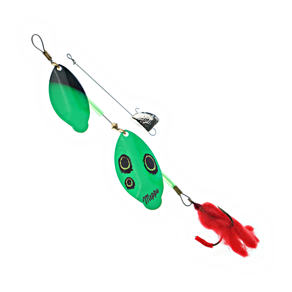 Блесна вращающаяся Mepps Tandem Pike Brochet с мушкой 27+13гр черная, зеленая