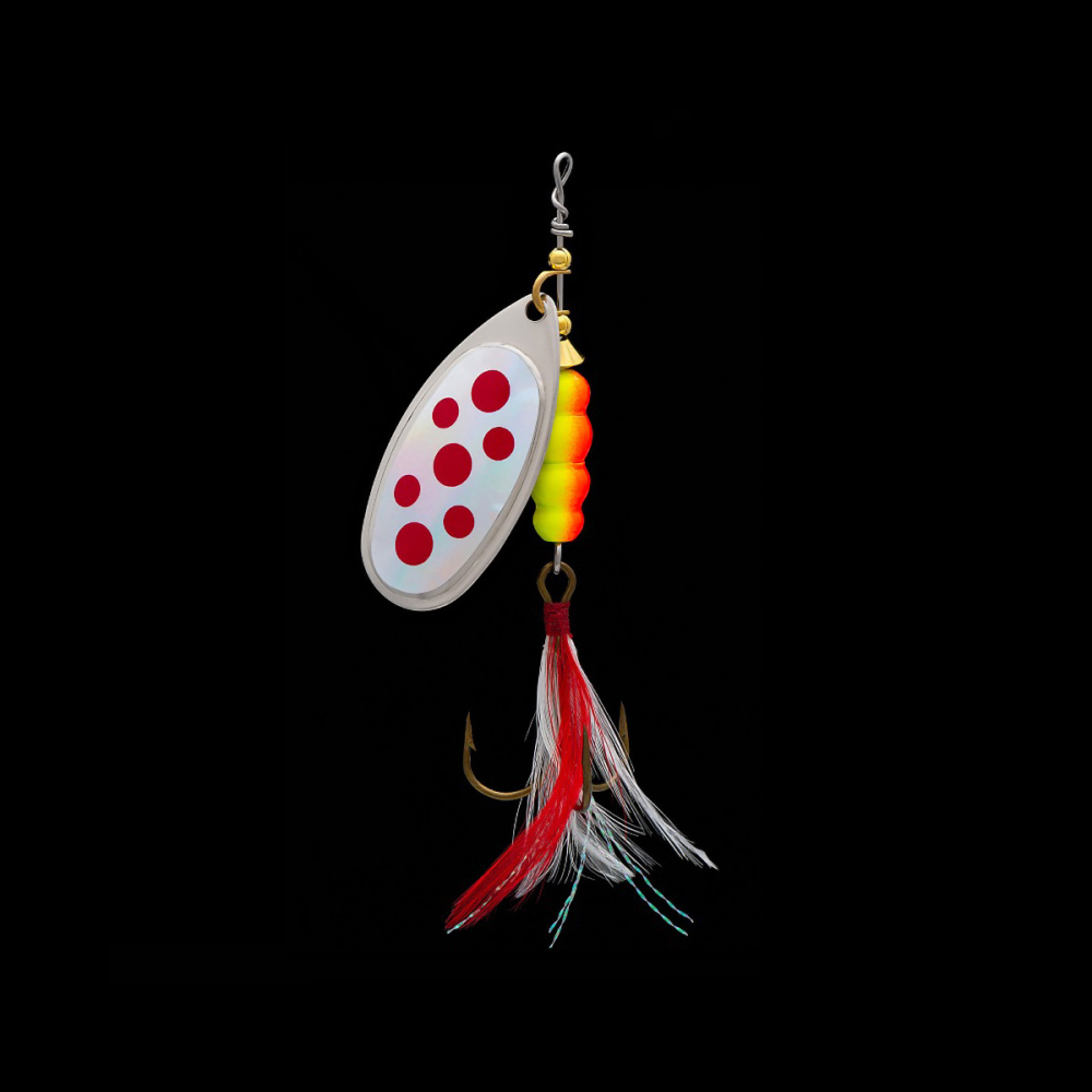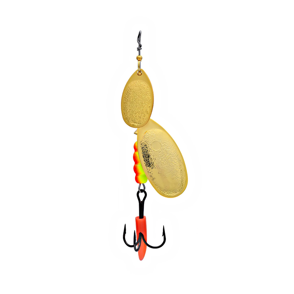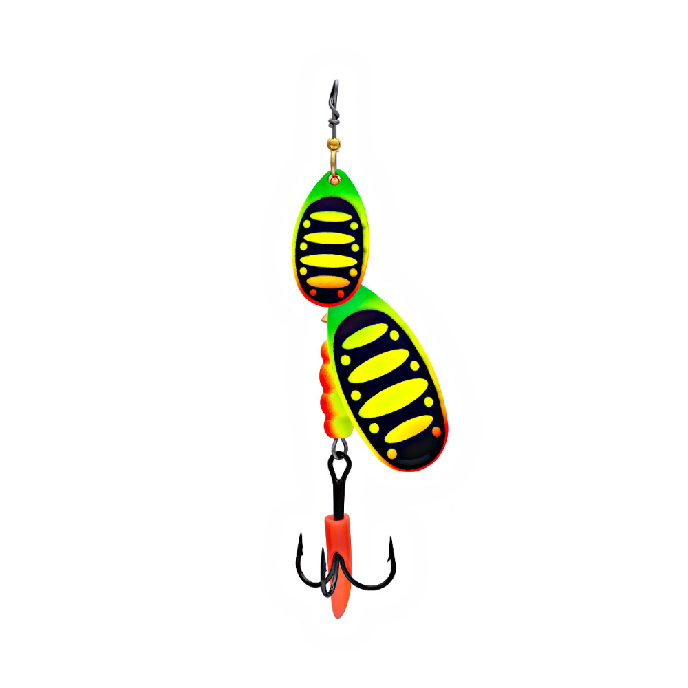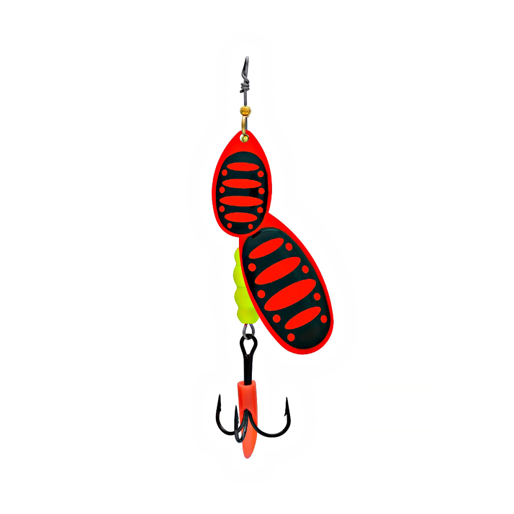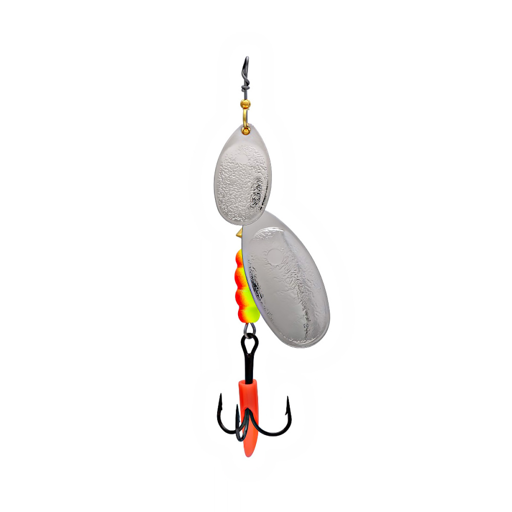 А сердечник, похожий на маленькую гусеницу, делает блесну более привлекательной для хищника. Всю игру блесны можно изменять скоростью проводки - чем выше скорость проводки, тем выше скорость вращения лепестков, и наоборот. Блесна оснащена надёжным тройником Mustad.