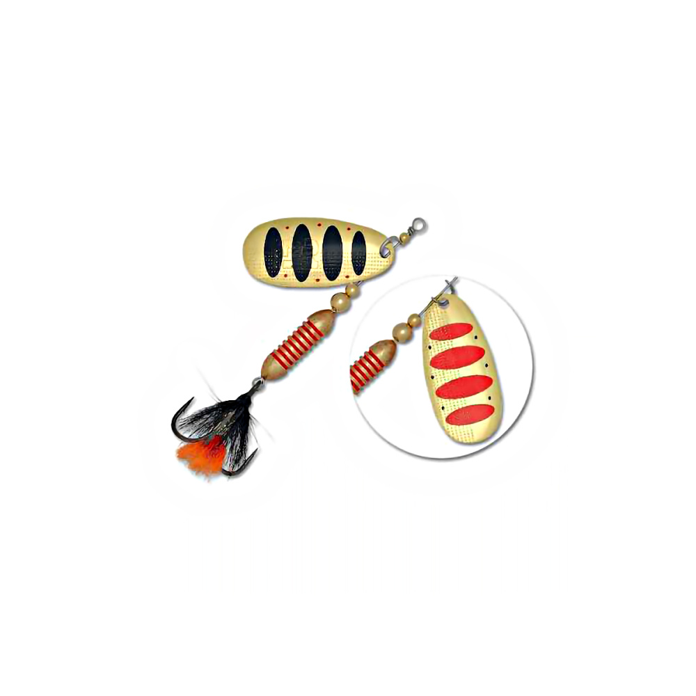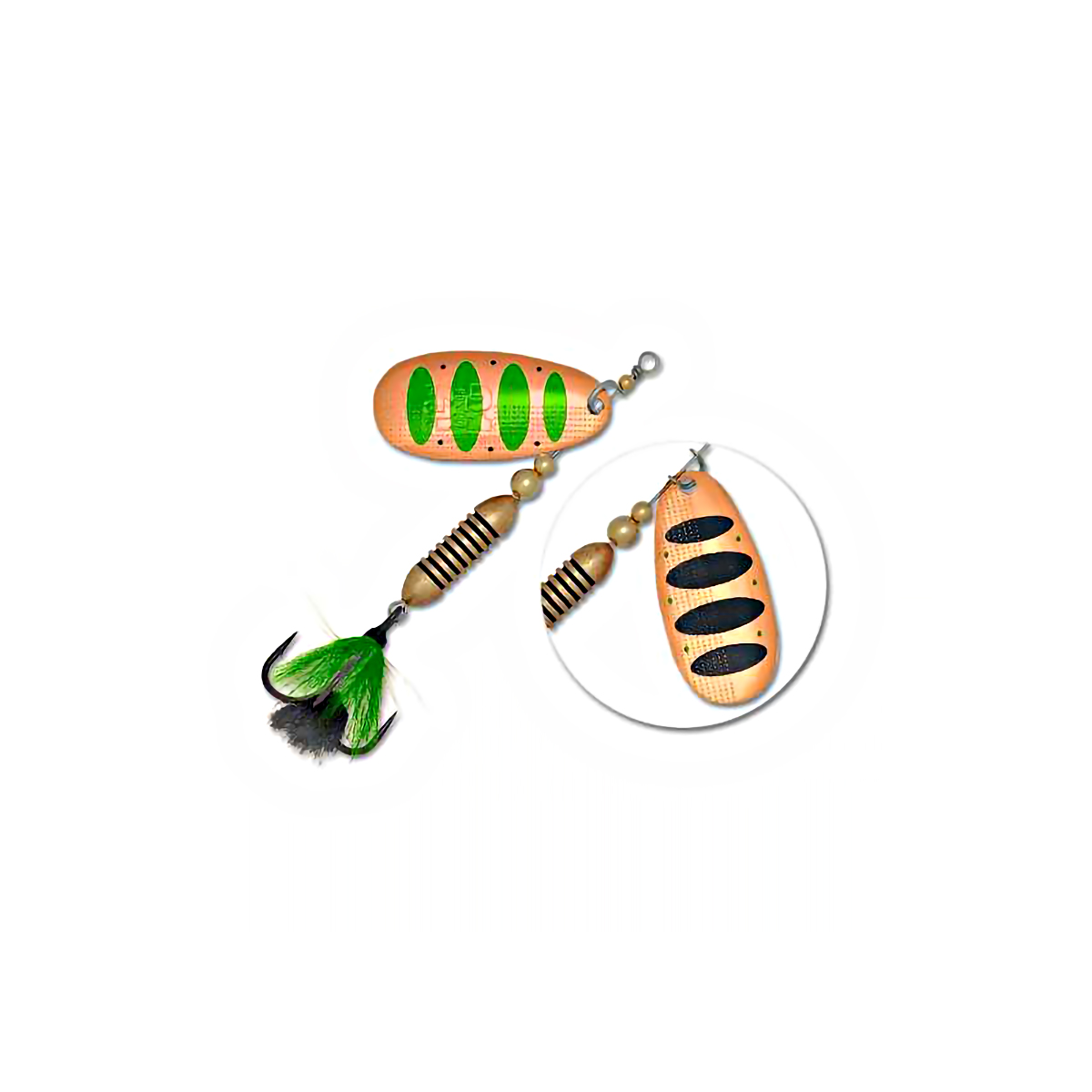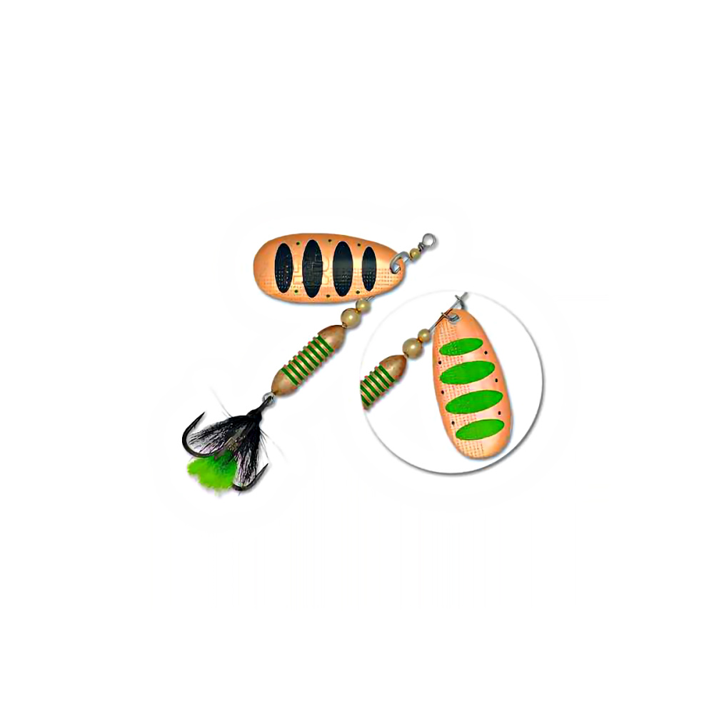 За счёт идеально подобранного размера тройника и лепестка, а также частоты вращения последнего, блесну можно смело забрасывать в траву, не боясь её оторвать, т.к. лепесток отбивает траву, не давая тройнику зацепиться. Прочный острый тройник оснащен мушкой, что положительно сказалось при ловле окуней, форели и жереха. Щуке также интересна эта приманка и она охотно ей атакует.
