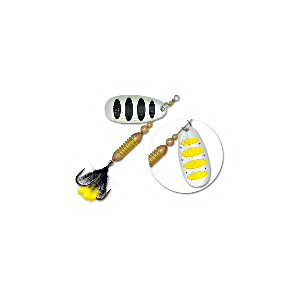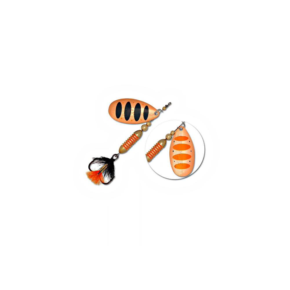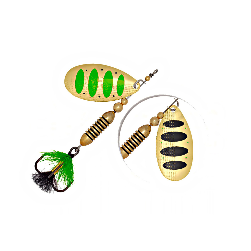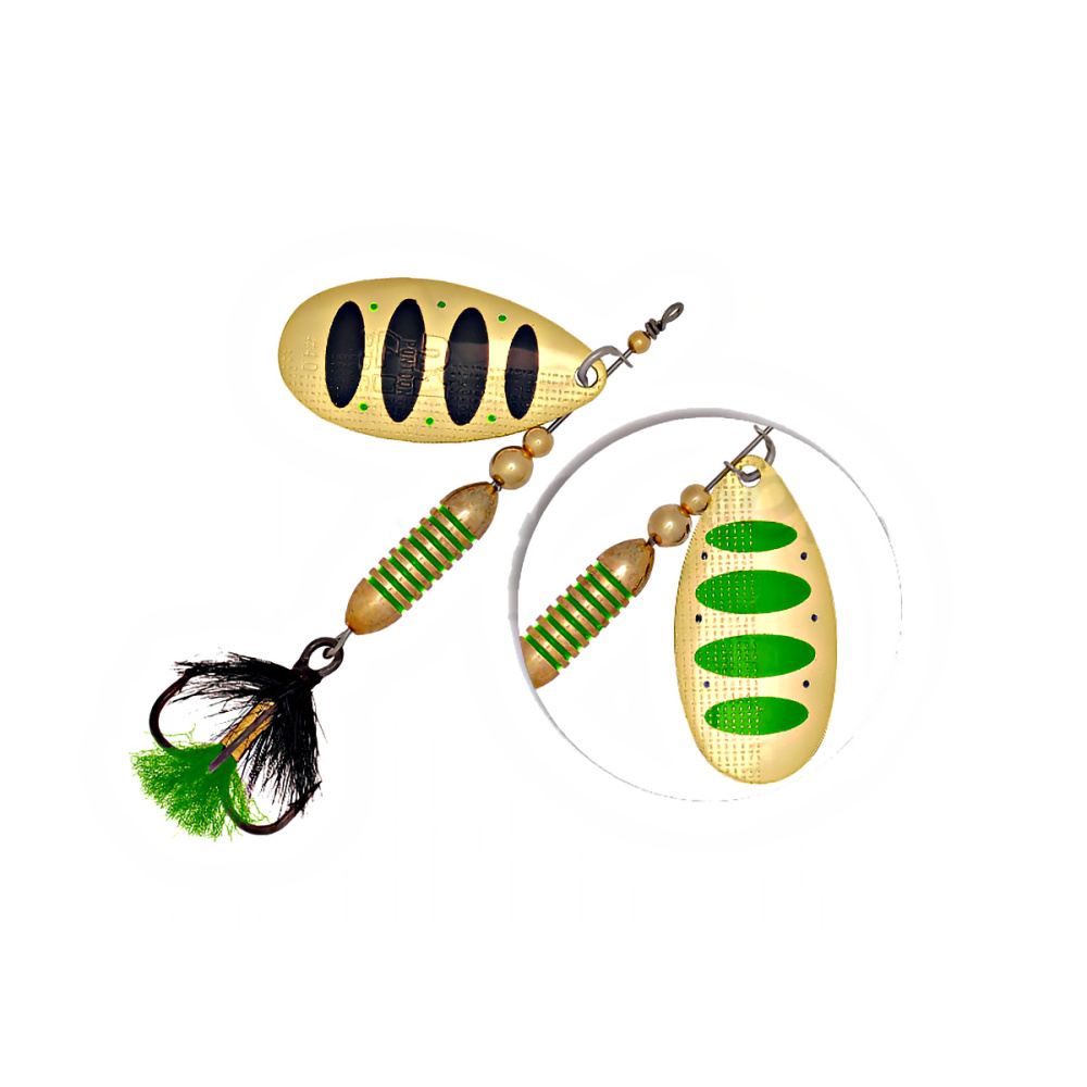 За счёт идеально подобранного размера тройника и лепестка, а также частоты вращения последнего, блесну можно смело забрасывать в траву, не боясь её оторвать, т.к. лепесток отбивает траву, не давая тройнику зацепиться. Прочный острый тройник оснащен мушкой, что положительно сказалось при ловле окуней, форели и жереха. Щуке также интересна эта приманка и она охотно ей атакует.