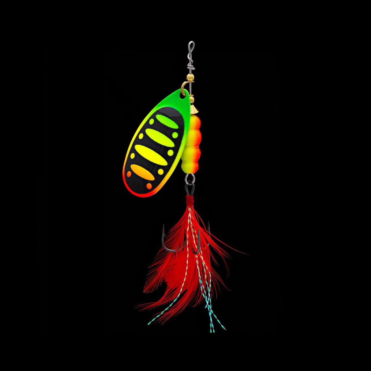 А сердечник, похожий на маленькую гусеницу, делает блесну более привлекательной для хищника. Всю игру блесны можно изменять скоростью проводки - чем выше скорость проводки, тем выше скорость вращения лепестка, и наоборот.
