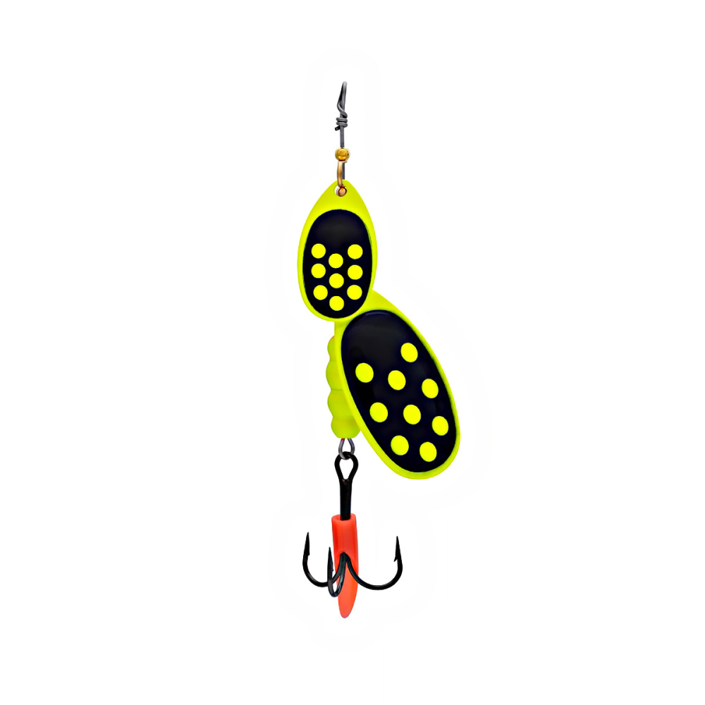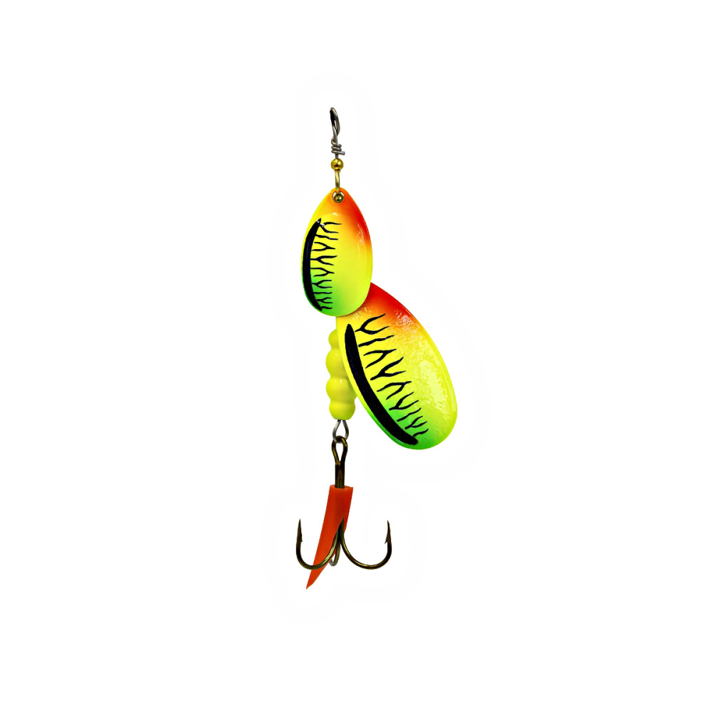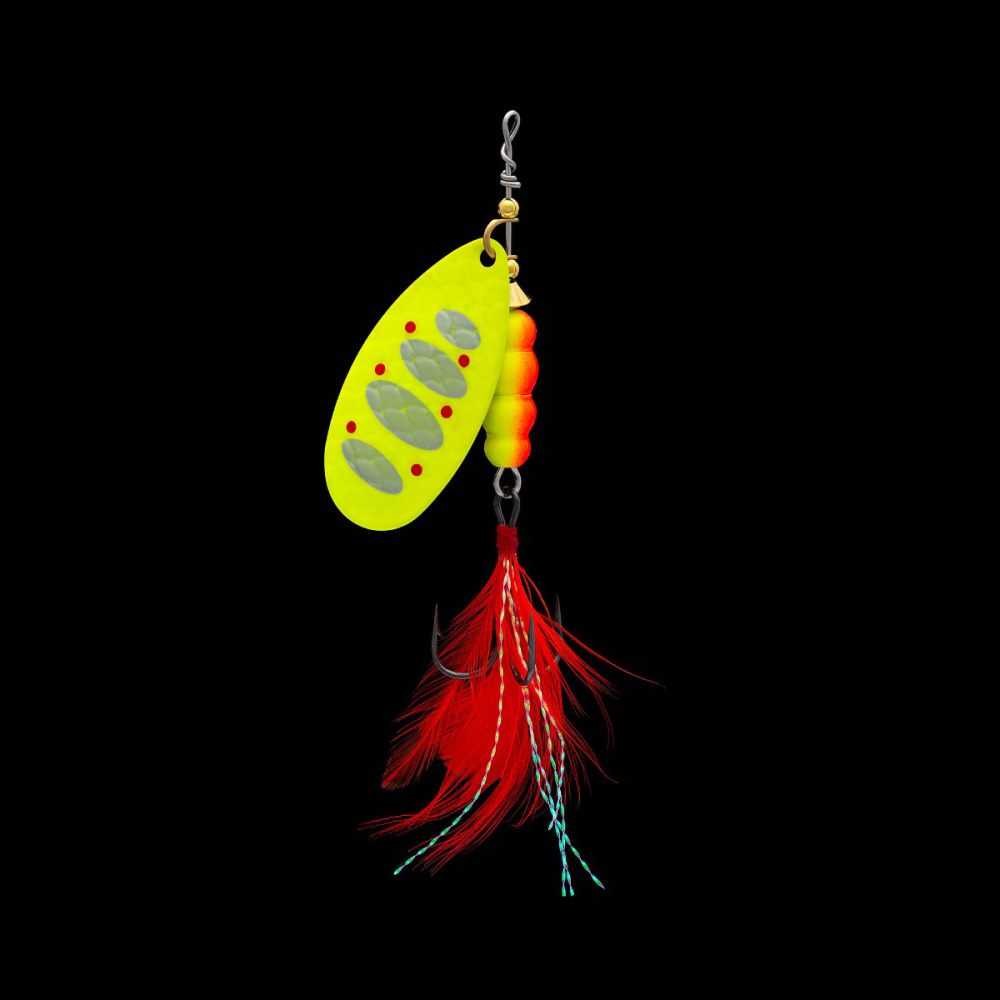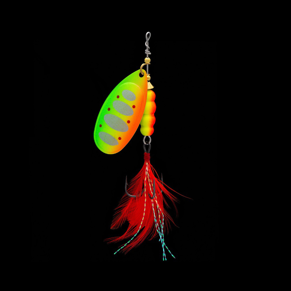 А сердечник, похожий на маленькую гусеницу, делает блесну более привлекательной для хищника. Всю игру блесны можно изменять скоростью проводки - чем выше скорость проводки, тем выше скорость вращения лепестка, и наоборот.