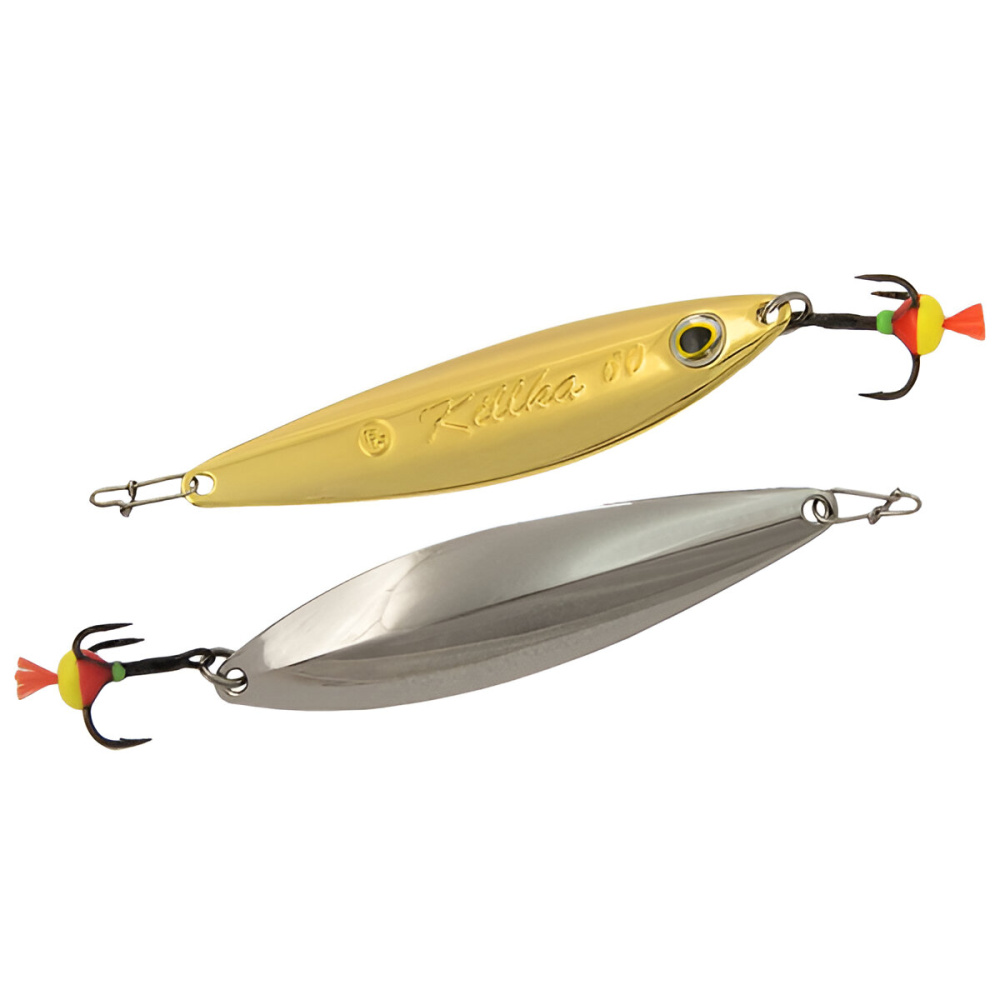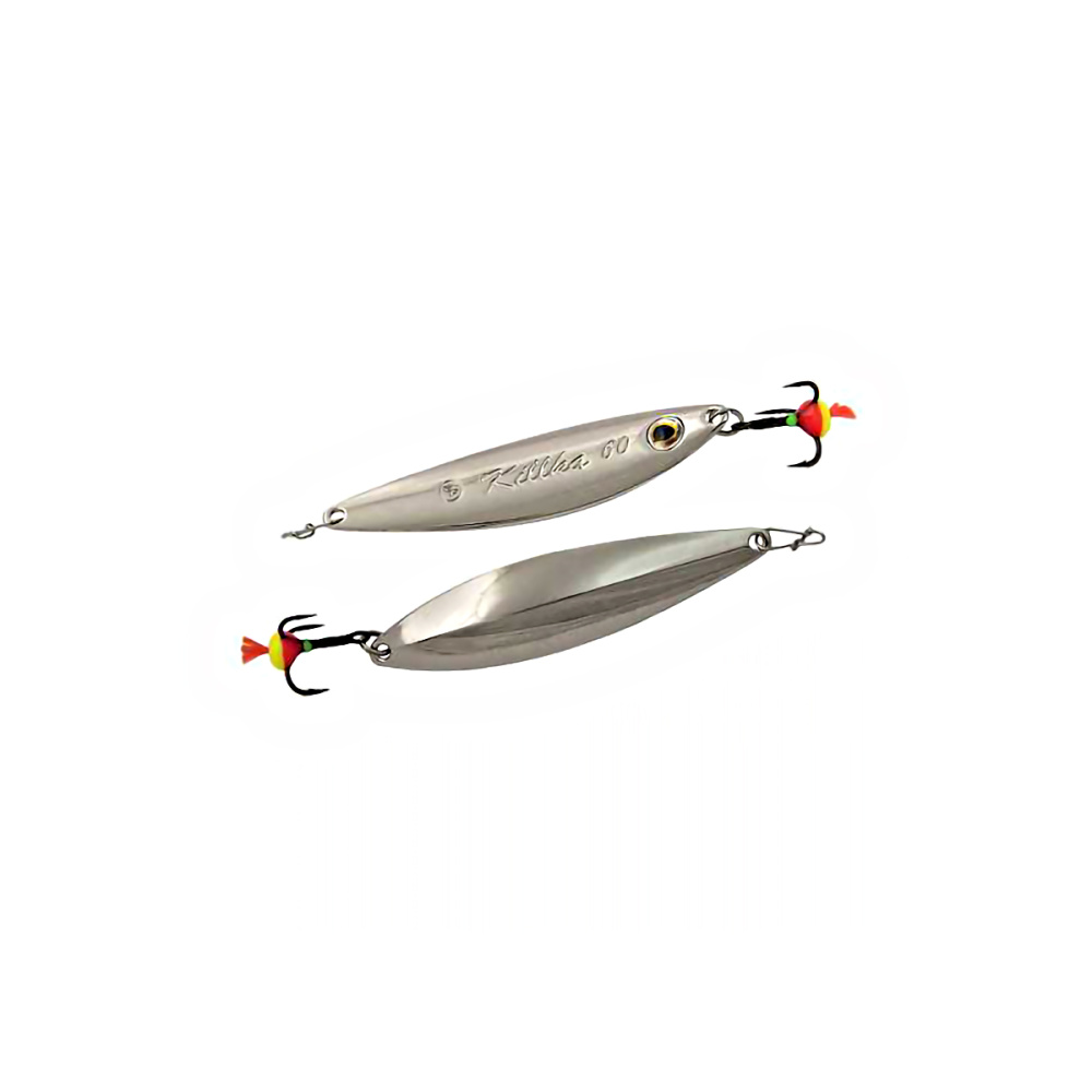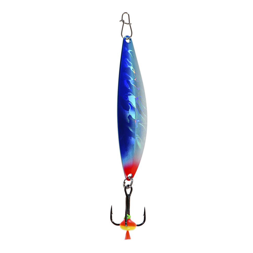 Выразительная вертикальная игра за счёт широкого силуэта — приманка долго «планирует» и задерживает рыбу под лункой