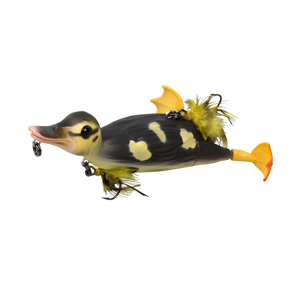 Вращающиеся лапы придают жизнь приманке, создавая брызги, пузыри и волновой след, которые приманивают хищников с дальнего расстояния. В открытой воде используются два тройника с перьями - один на животе, другой на спине.