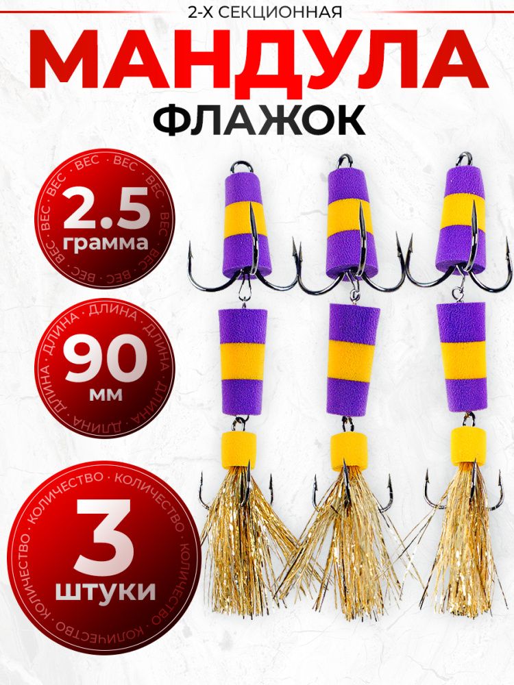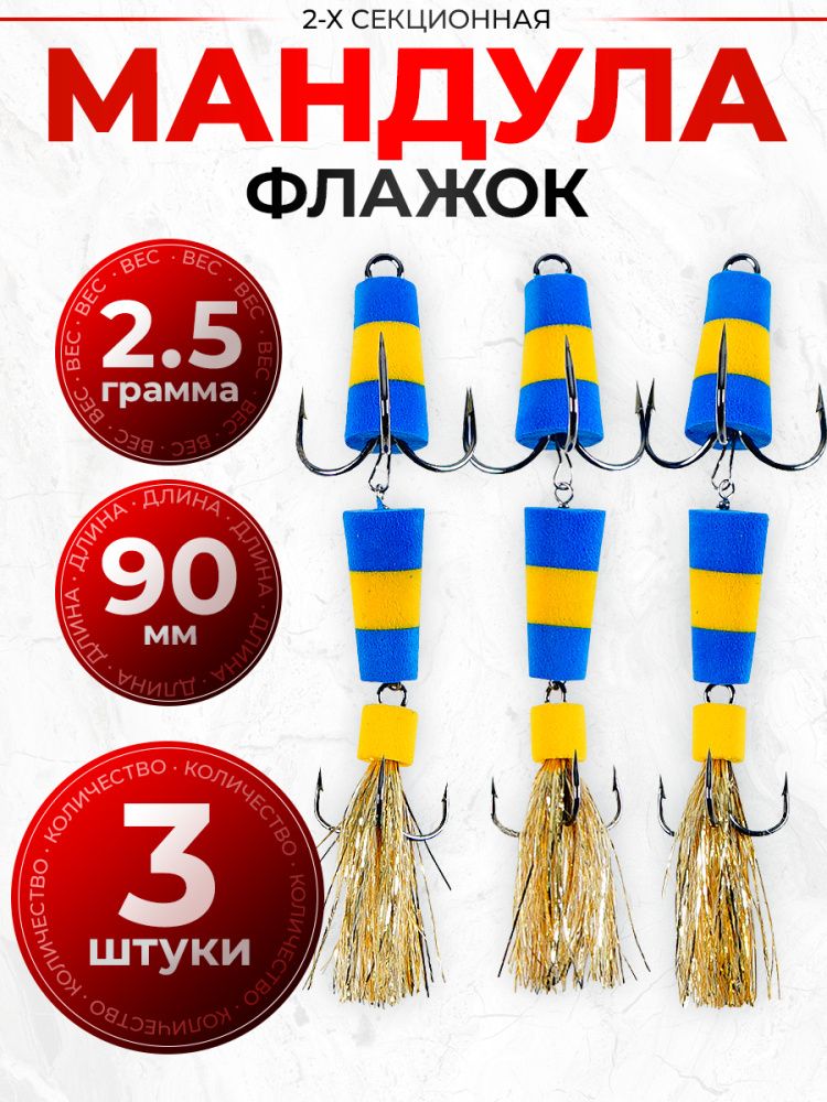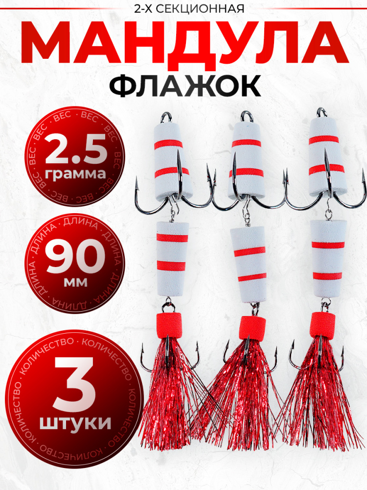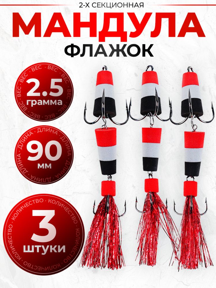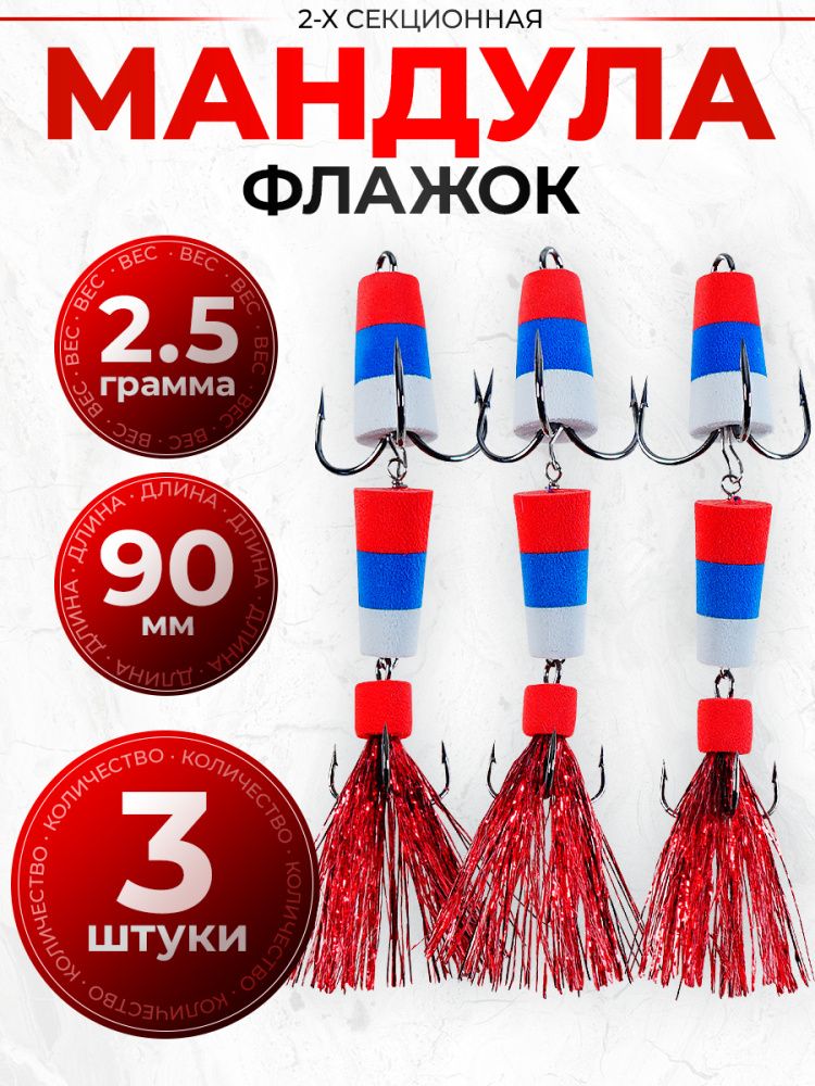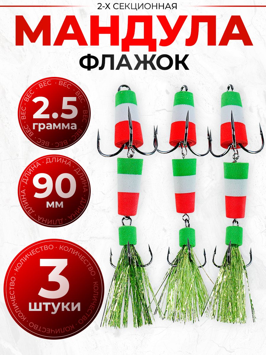 Ключевые слова: мандула, мандула‑флажок, двухсекционная мандула, 90 мм, триколор, зеленая белая красная, комплект 3 шт