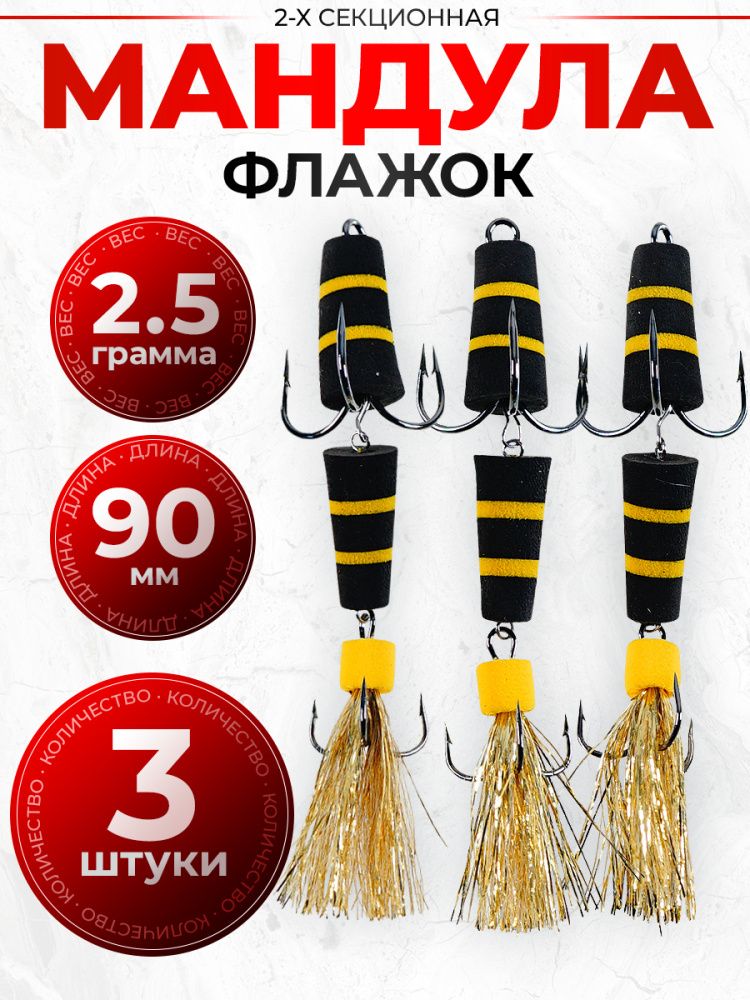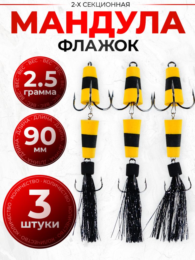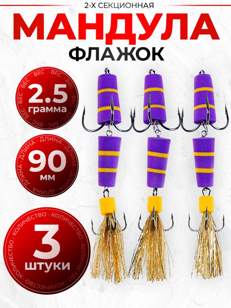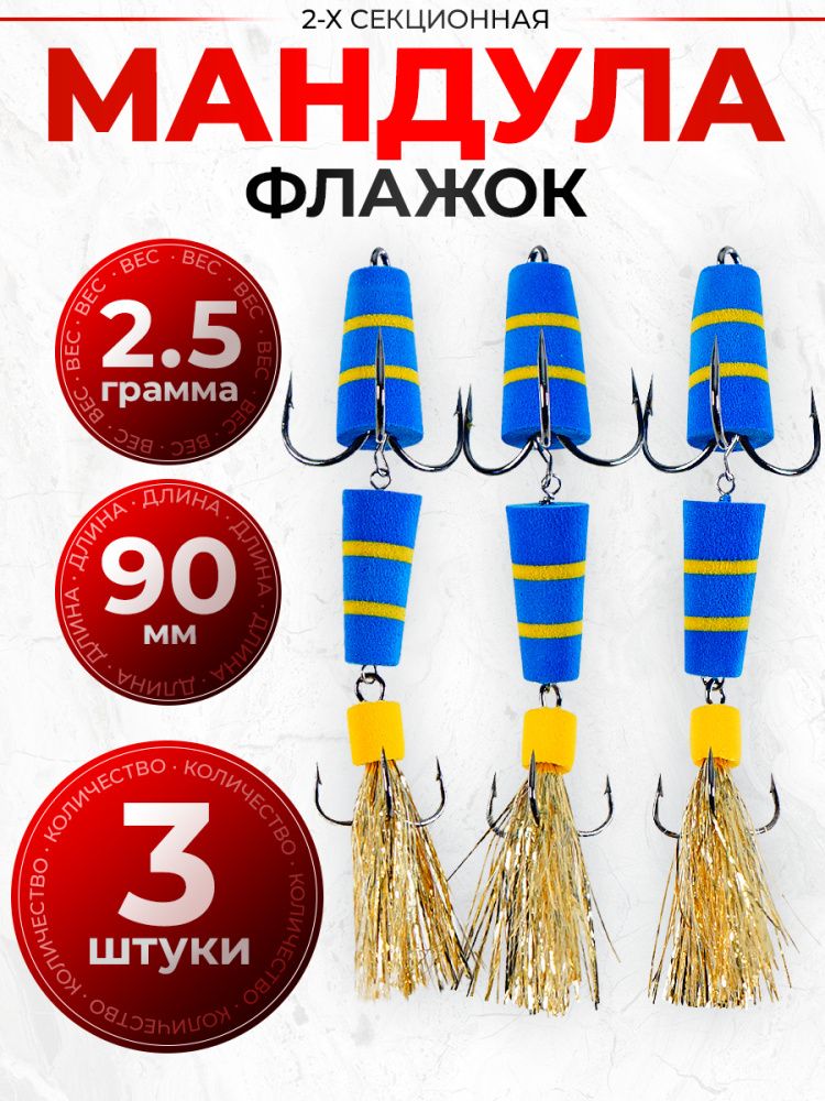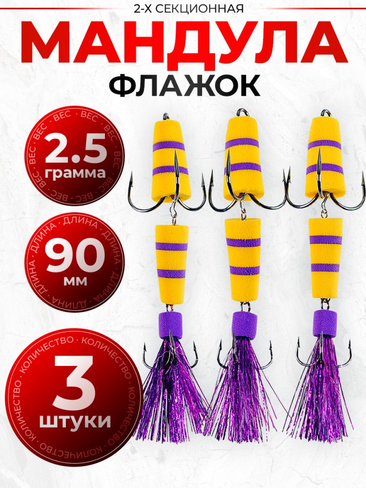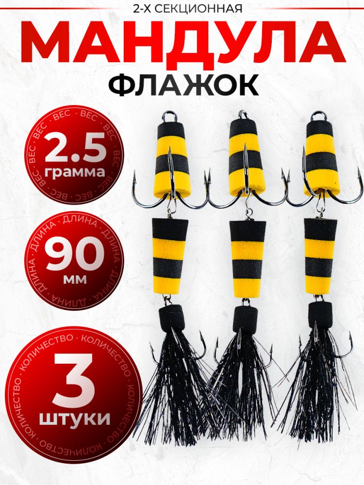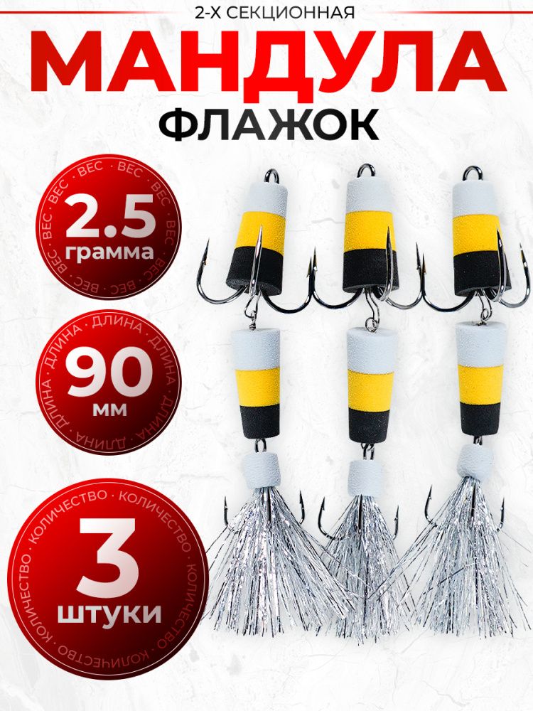 Ключевые слова: мандула, мандула‑флажок, двухсекционная мандула, 90 мм, триколор, зеленая белая красная, комплект 3 шт