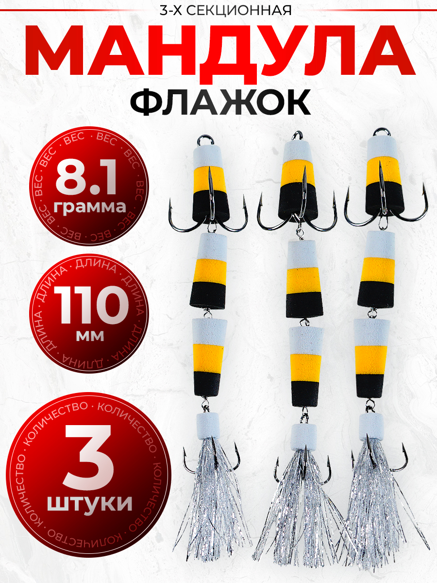 Мандулы-флажок М131 3-х секционная 110мм (3шт) белая, желтая, черная